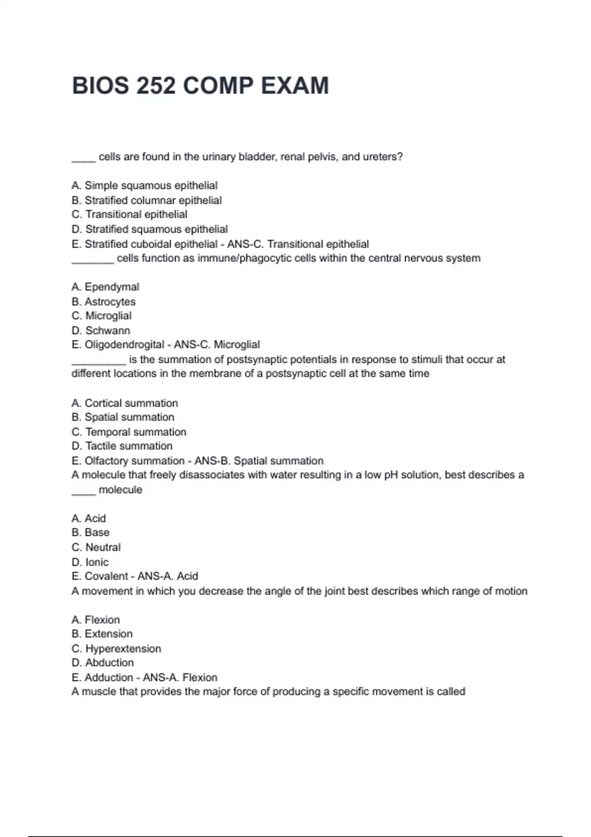 BIOS 252 EXAM questions and answers rated A+ 2024/2025 (ALL BUNDLED HERE!!!)