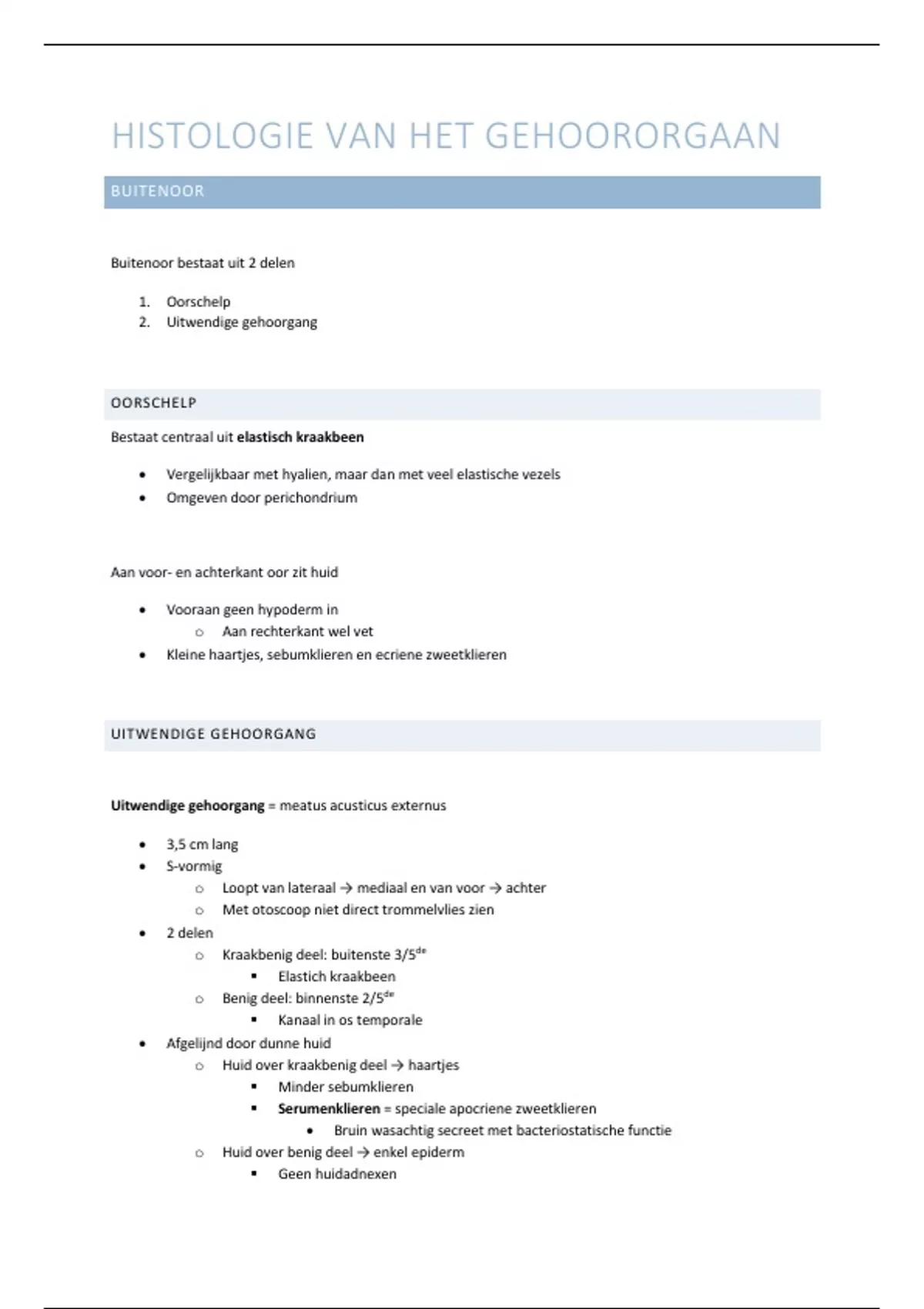 omvat histologie van gehoororgaan, gezichtsorgaan, receptoren, reukorgaan en smaakorgaan