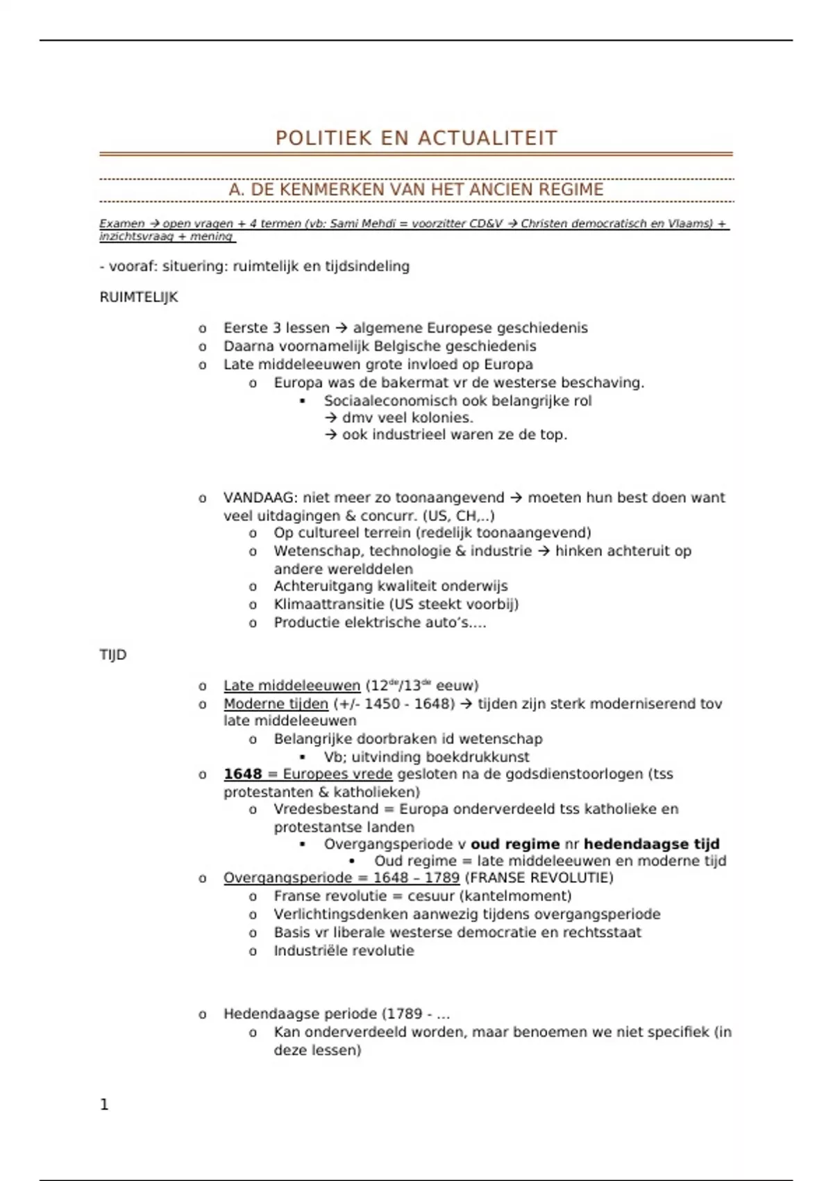 Samenvatting zelfstudie Politiek en actualiteit