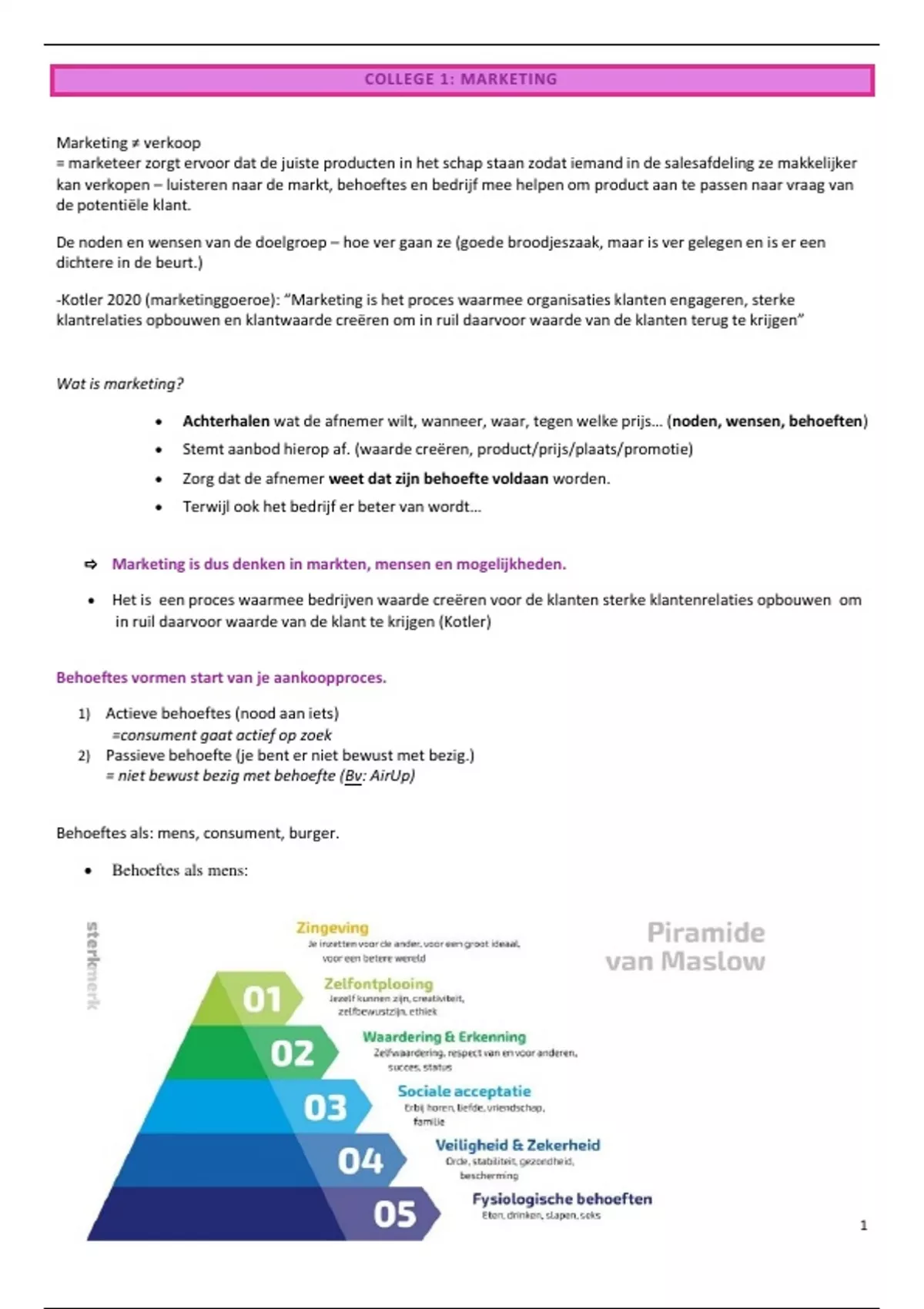 Samenvattingen Marketing, Strategie 1 en Consumententenpsychologie