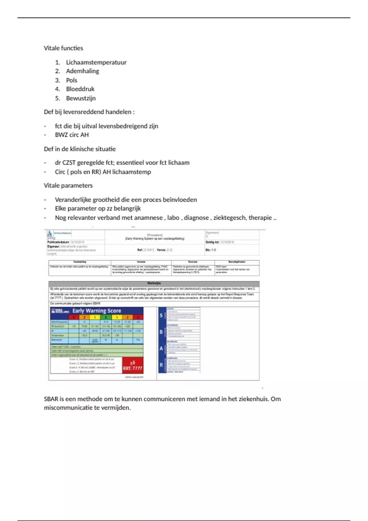 Samenvatting - Fysiologie, zorg en begeleiding: VITALE FUNCTIES