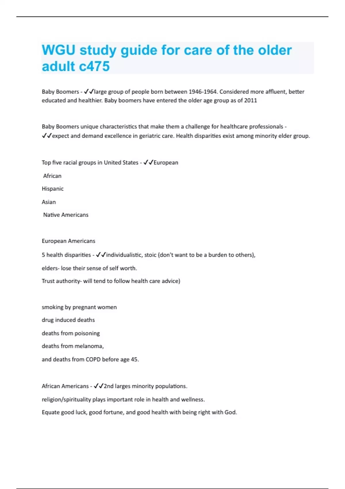 Care of the Older Adult C475 Chapter 1 | Questions with 100 % correct Answers | Verified