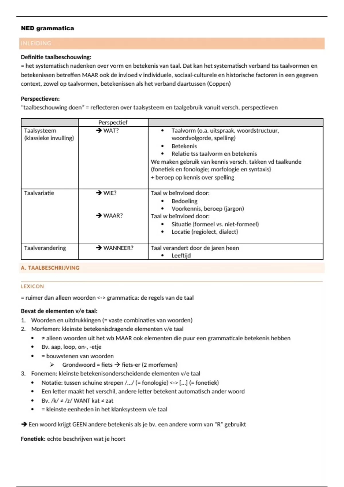 Deze voordeelbundel bevat deel 1 en deel 2 van de samenvatting van Nederlands taalbeschouwing, gegeven door Hanne Kloots