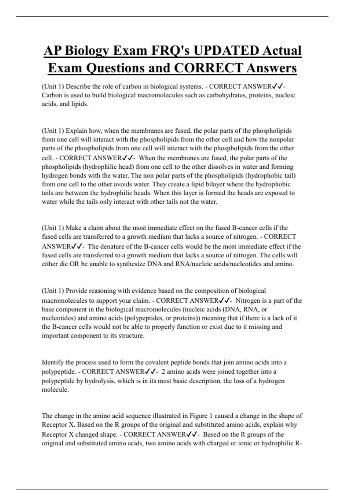AP BIO Bundled Exam Questions WITH CORRECT Answers