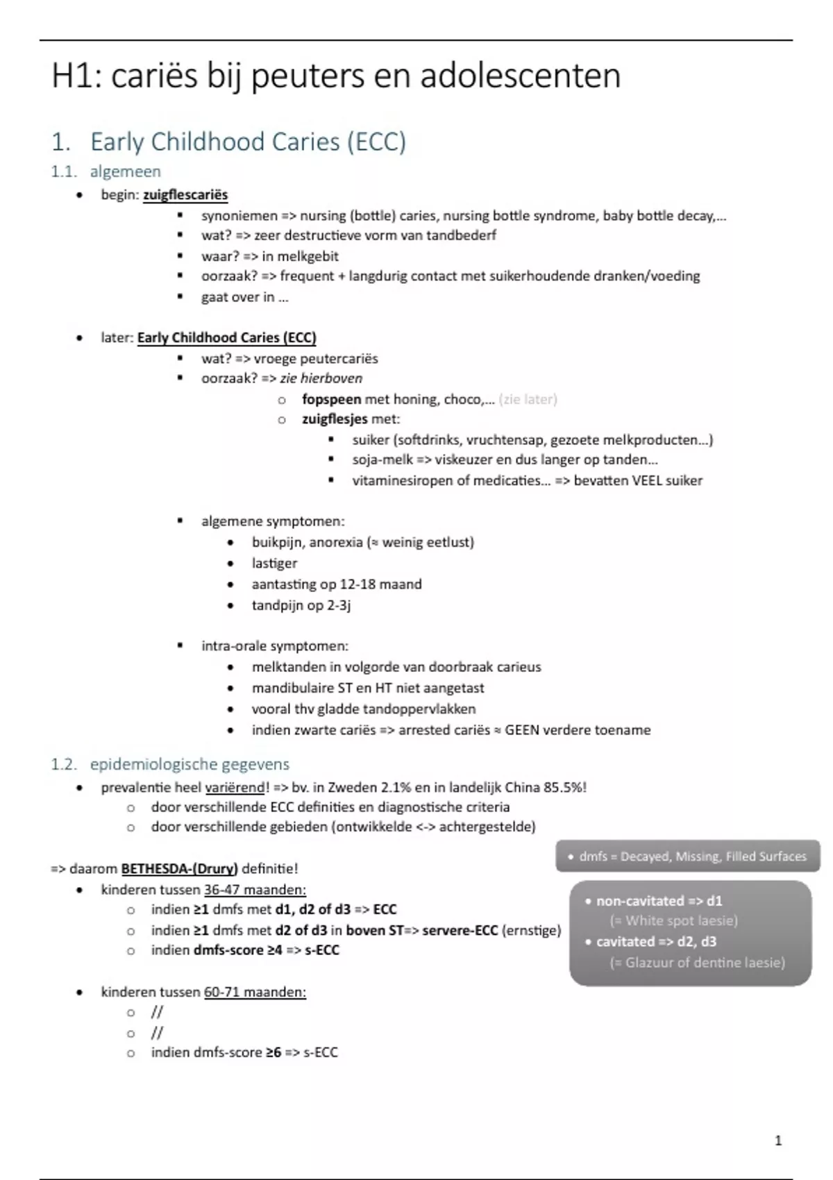 Samenvatting - Orale infectie I : cariologie - Kindertandheelkunde (D012468)