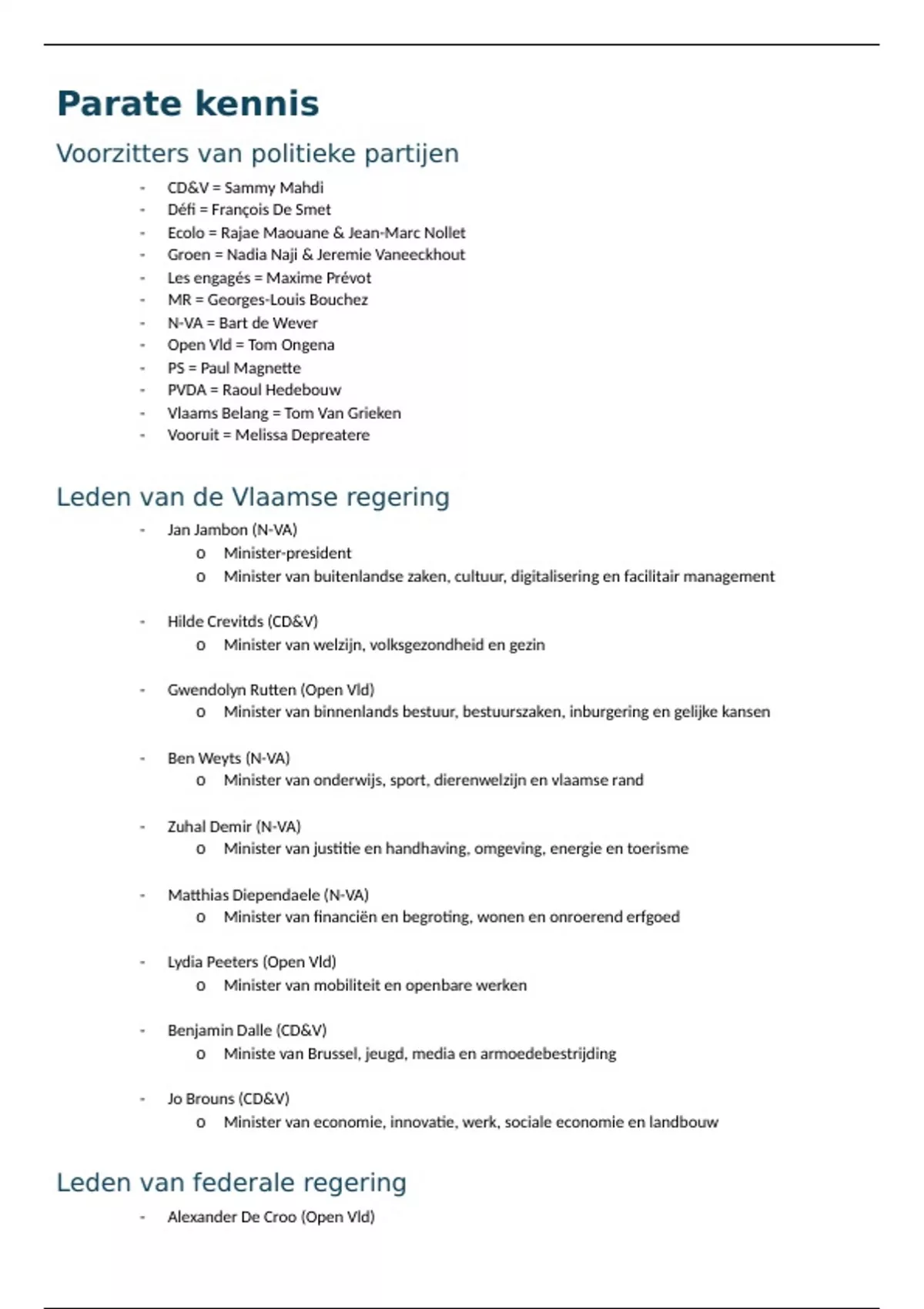 samenvatting belgische binnenlandse politiek