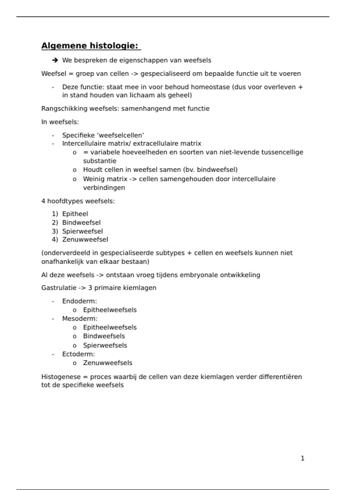 samenvatting algemene histologie