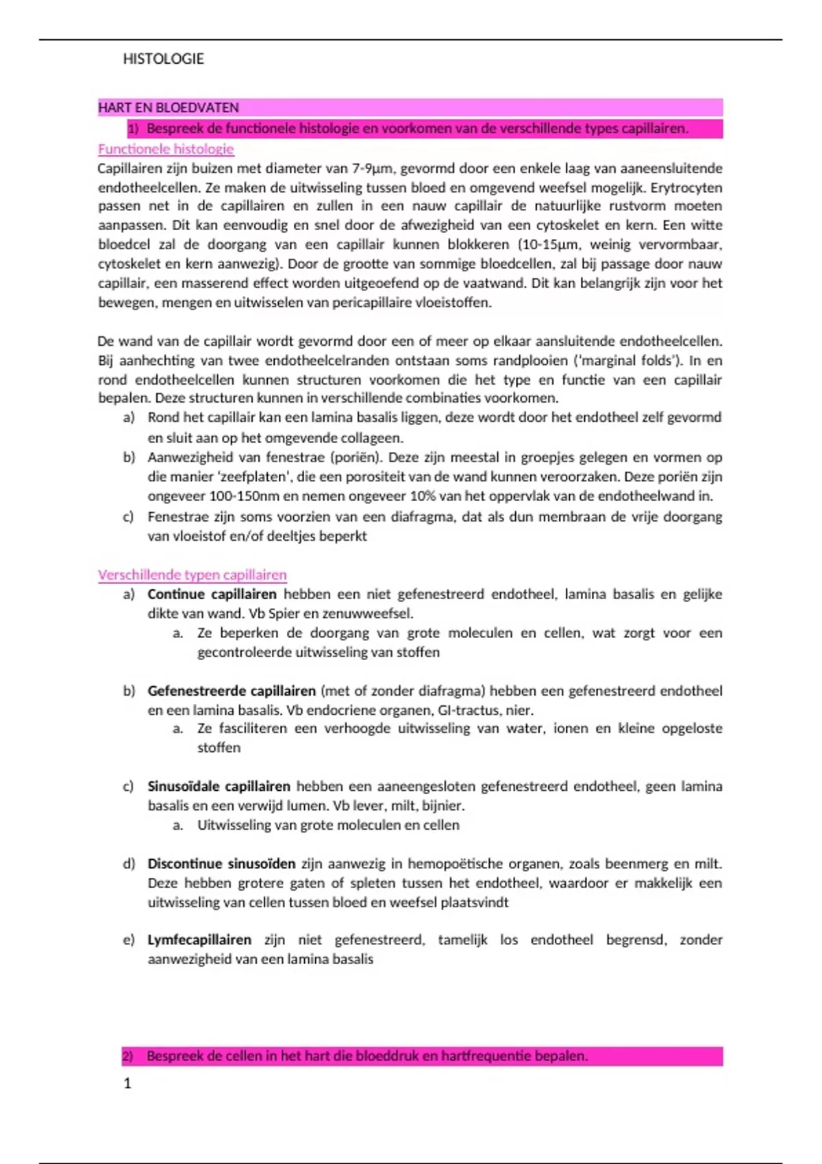 Open assay vragen Histologie & Histopathologie van de Orgaanstelsels