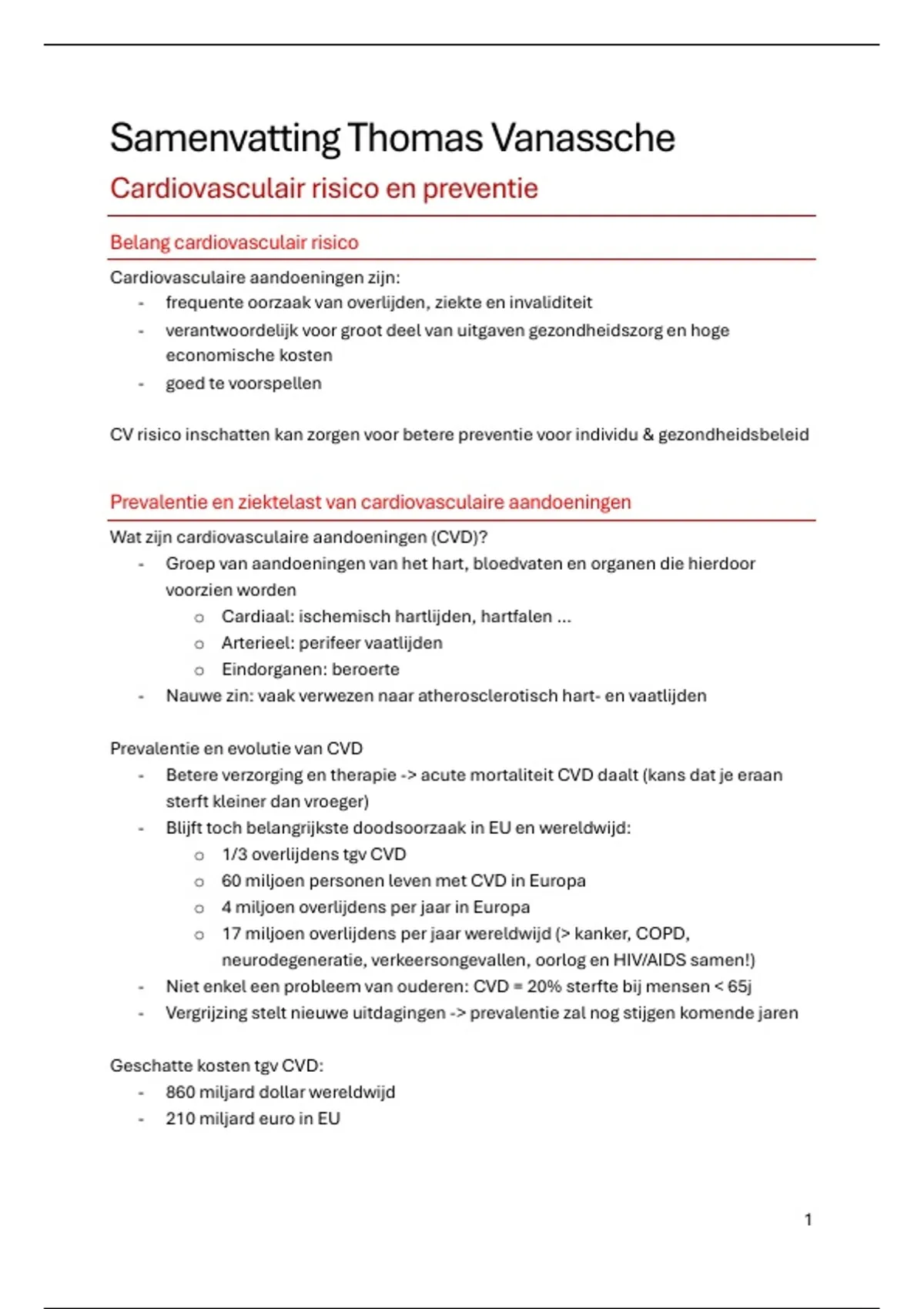 samenvatting ziekteleer bloedvaten en hart - deel prof. Vanassche