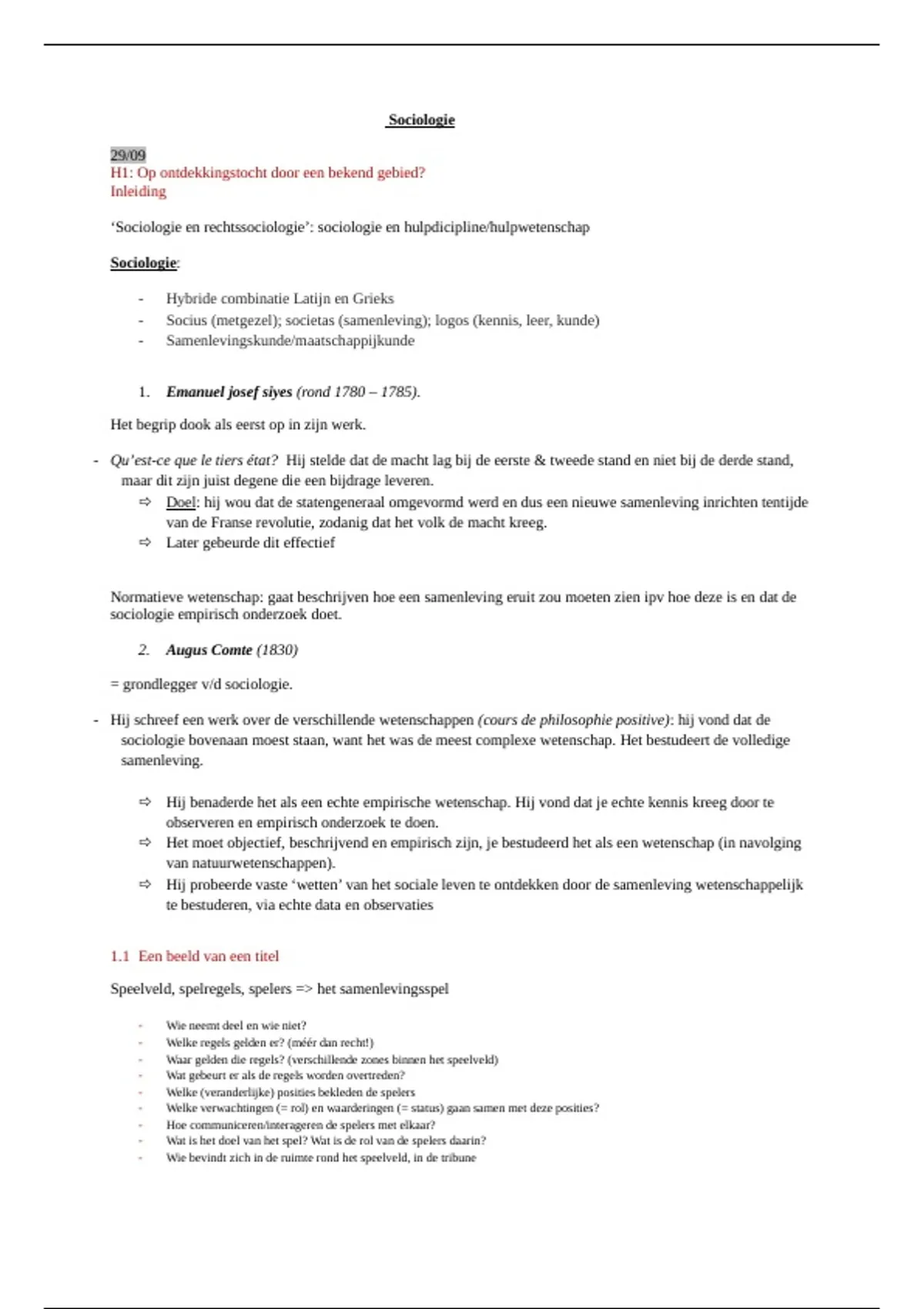 Volledige samenvatting sociologie en rechtssociologie (incl gastcollege) UA, gemaakt adhv lesnotities en alle lesopnames opnieuw bekeken