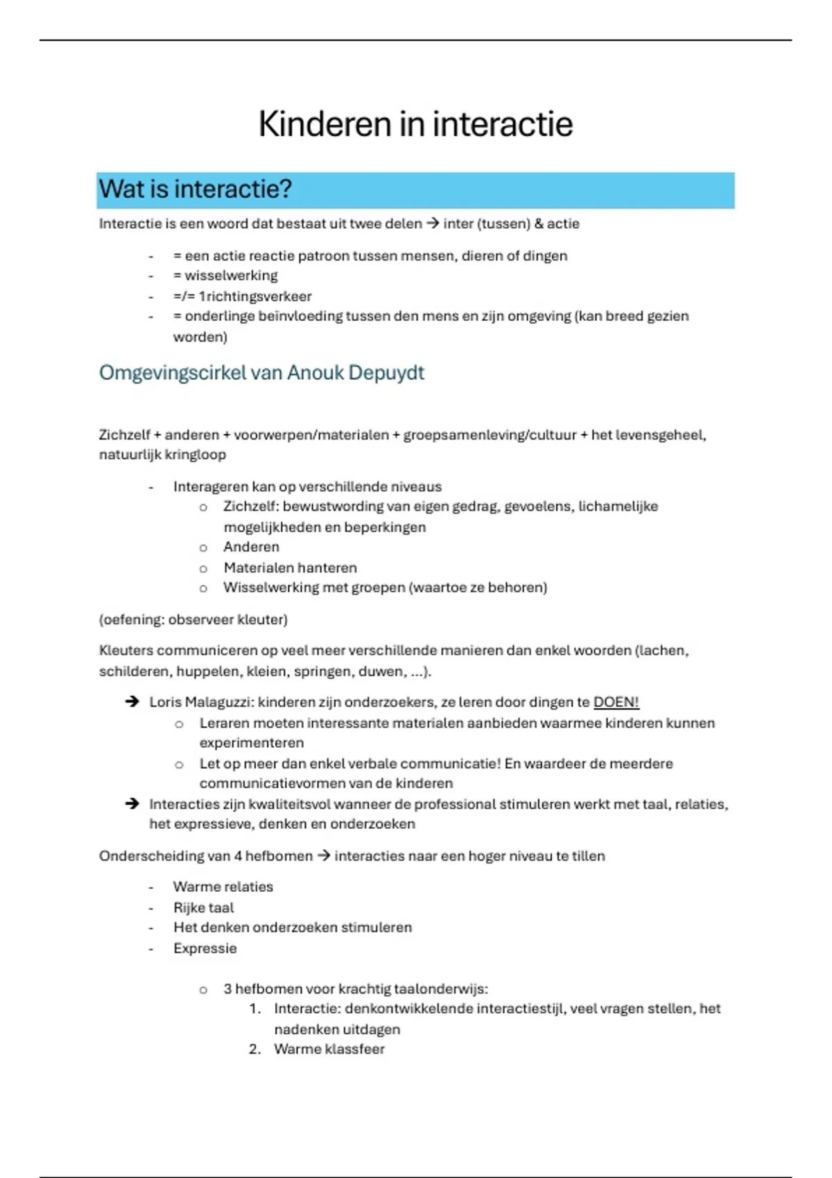 Dit houdt in; kinderen in interactie en kinderen begeleiden