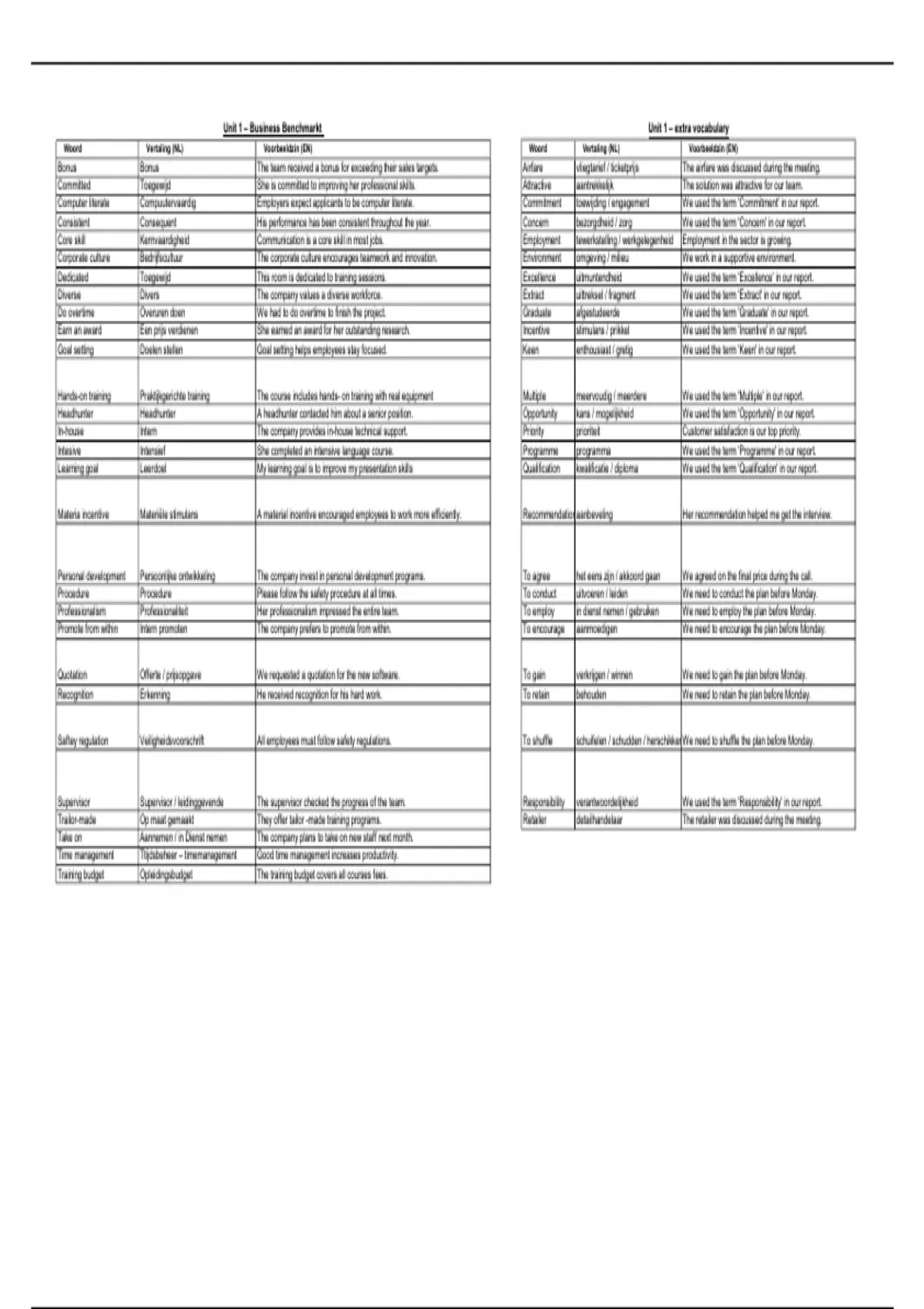 * Woordelijst unit 1-12 (Business Bench mark book) * extra vocabulaire van het jaar opp Thomas more Hogeschool