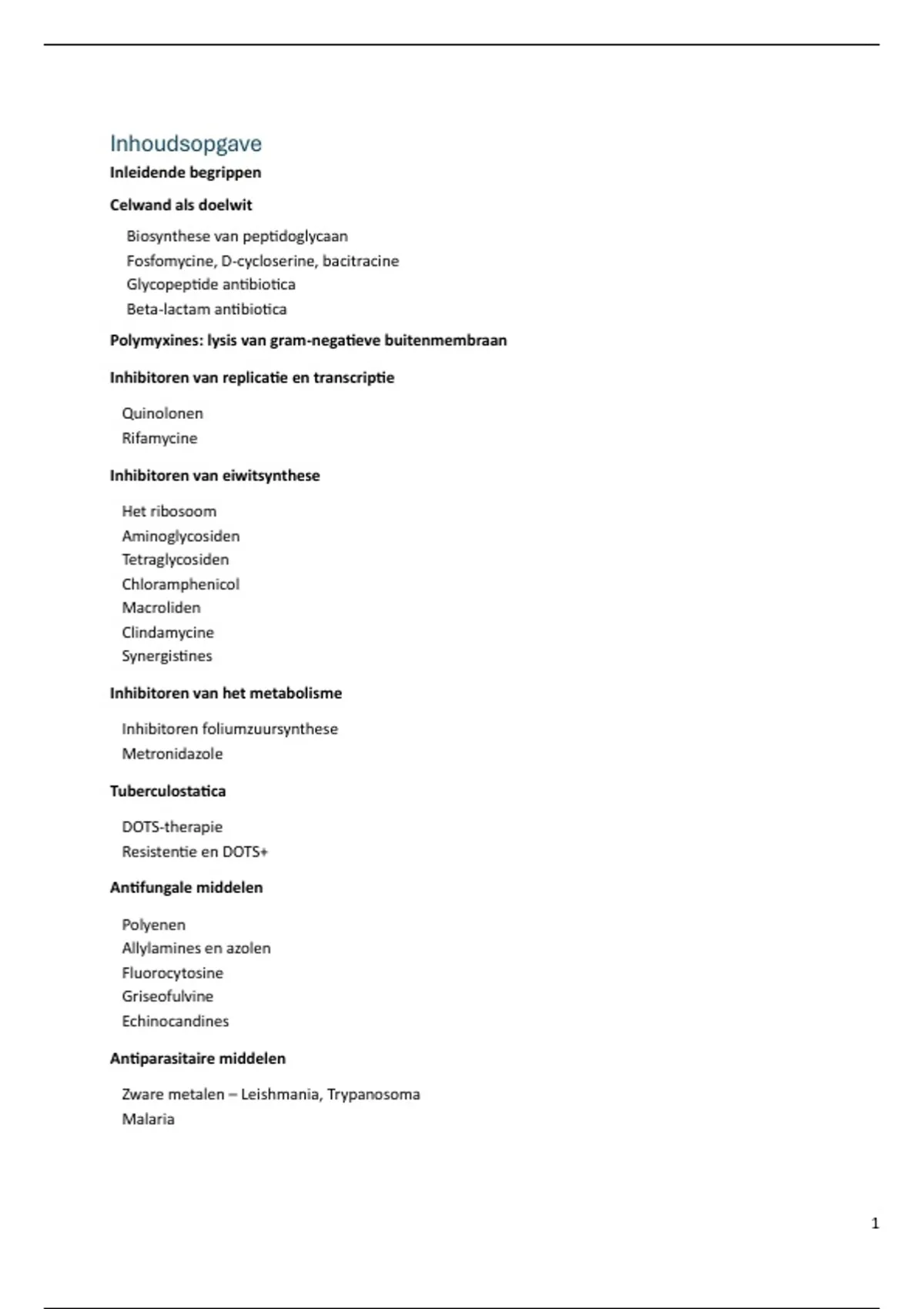 samenvatting antibiotica (microbiologie)