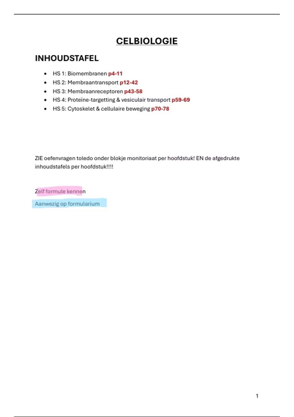 Samenvatting celbiologie, methoden in het biomedisch onderzoek 1, biochemie & moleculaire biologie.
