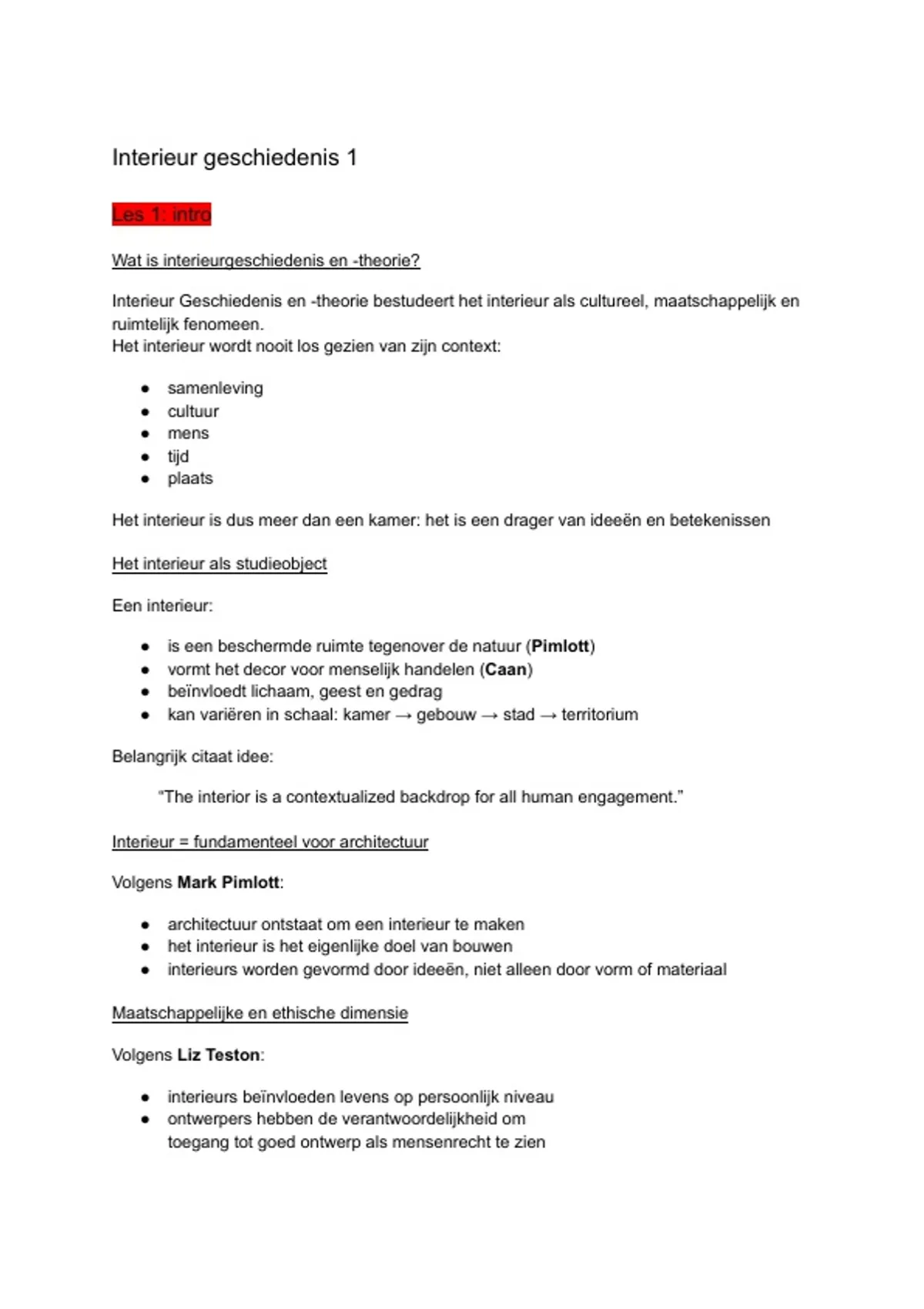interieur geschiedenis 1 lecturen & samenv