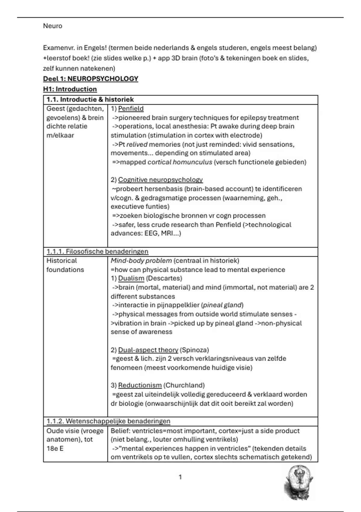 Volledige samenvatting neuropsychology & zelfstudie neuropsychologie, met handig leerstofoverzicht