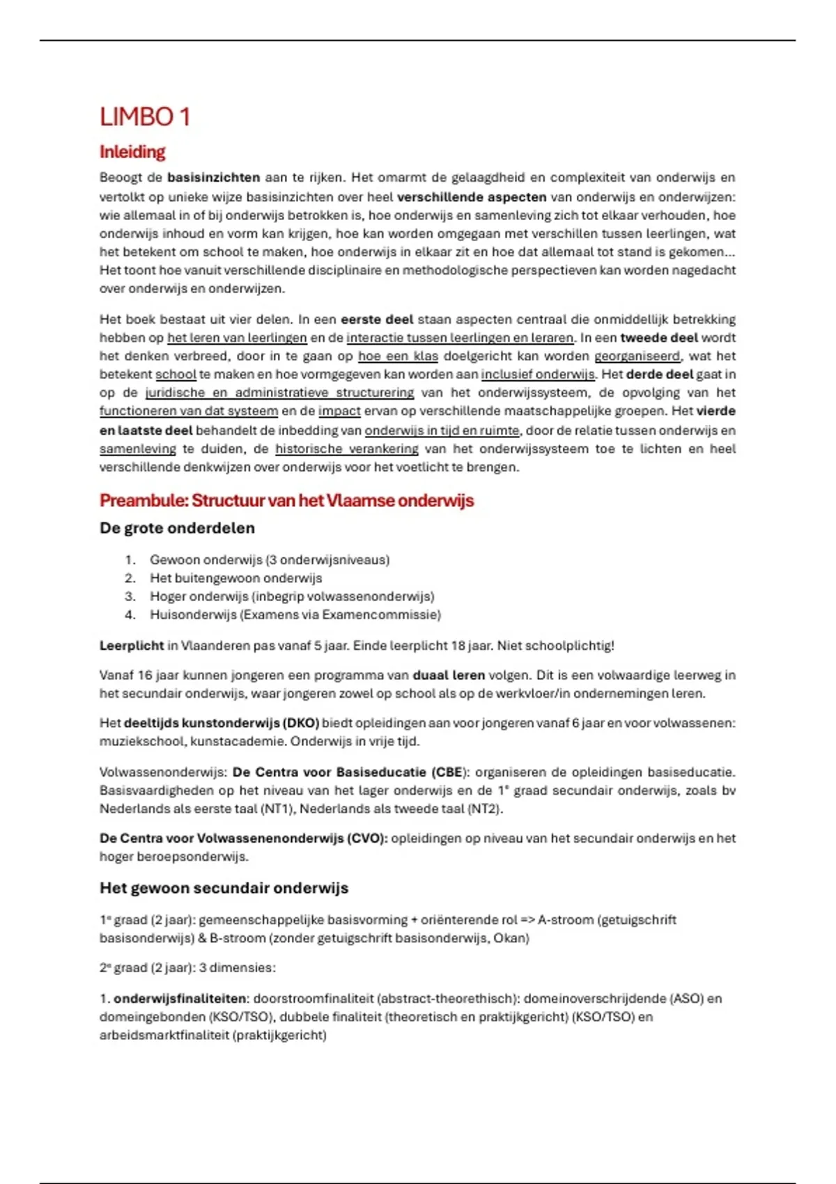 Samenvatting van deel 1 en deel 2 per hoofdstuk uit het boek van Limbo 1