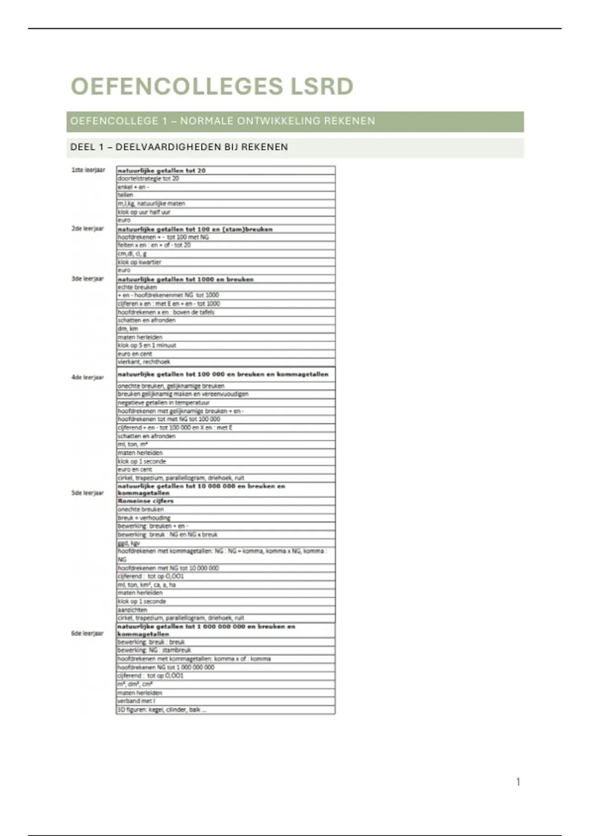 DEEL 1 – DEELVAARDIGHEDEN BIJ REKENEN