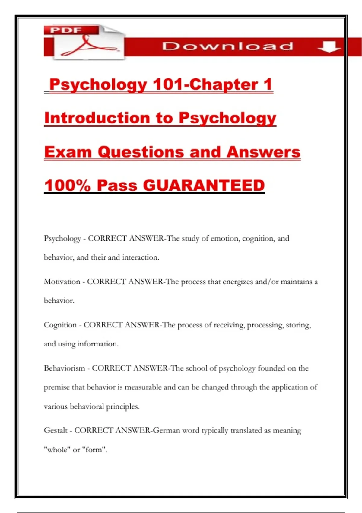 Psychology - CORRECT ANSWER-The study of emotion, cognition, and