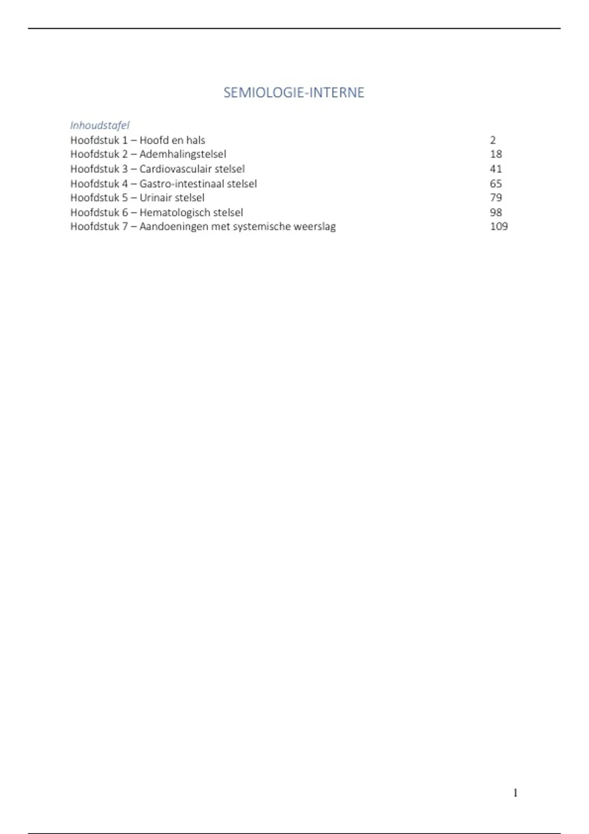 Hier vind je een duidelijke en gestructureerde samenvatting van het onderdeel interne van het vak Semiologie! Na dit te hebben geleerd moet het examen zeker lukken!