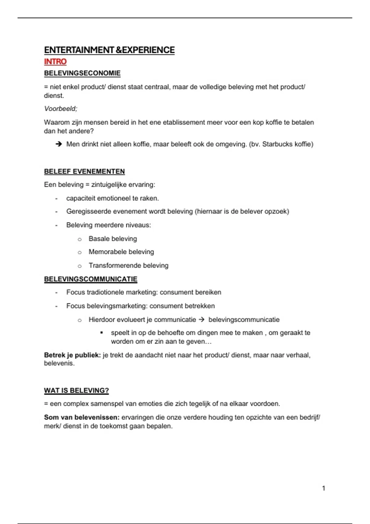 Samenvatting Volledige sv Entertainment en Experience MEB