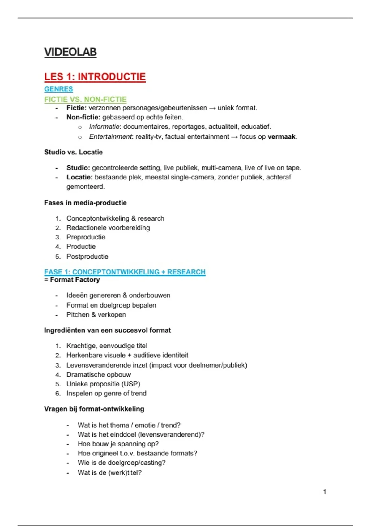 - Studio: gecontroleerde setting, live publiek, multi-camera, live of live on tape.