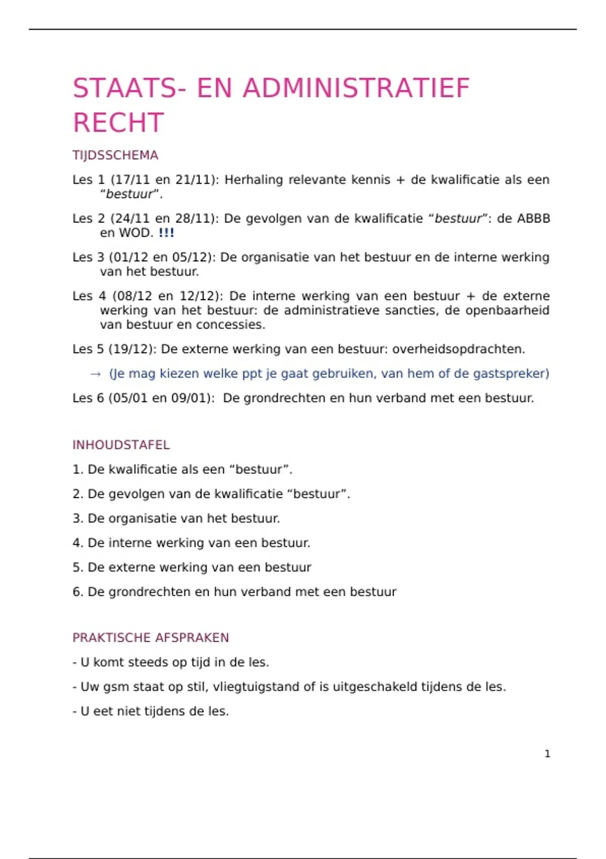 Les 6 (05/01 en 09/01): De grondrechten en hun verband met een bestuur.
