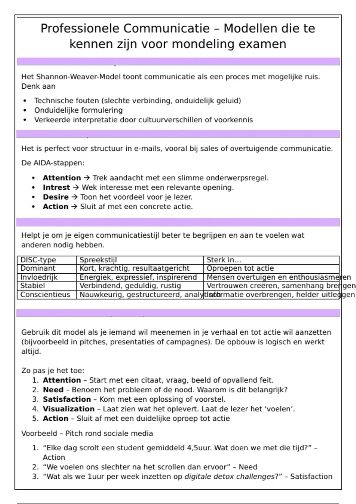 Dit is een volledige samenvatting voor het vak Professionele communicatie voor studenten eerstejaarsstudenten immobiliën en verzekeringen. Je vind hier alles in wat je moet kennen voor het examen.