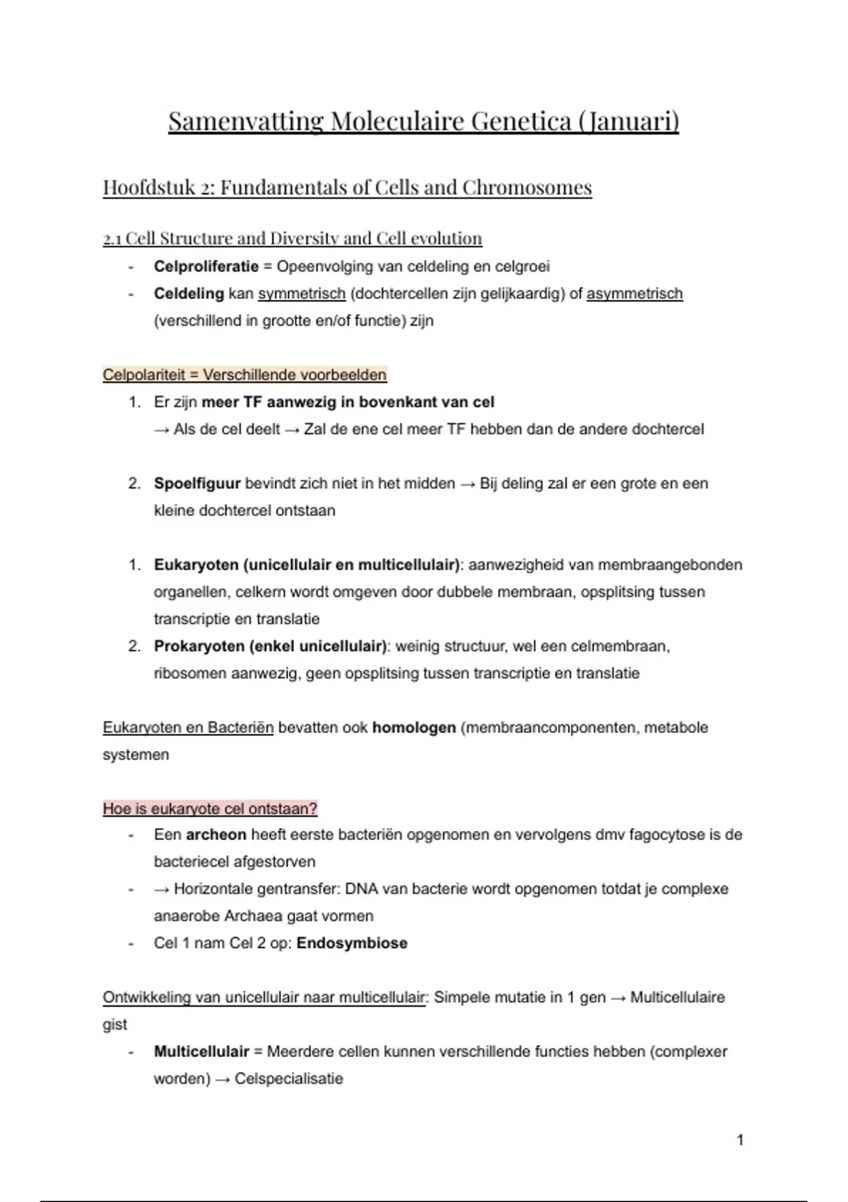 Samenvatting Moleculaire Genetica ( Januari)