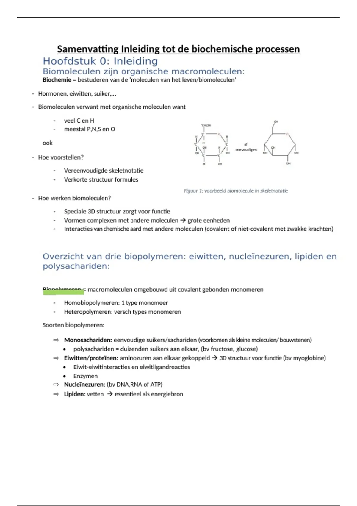 Samenvatting Inleiding tot de biochemische processen
