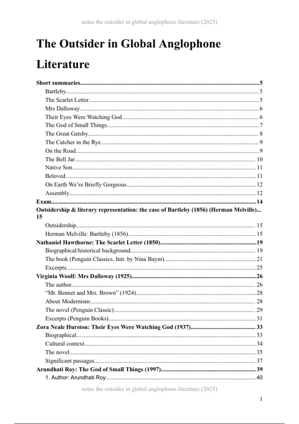 Notities van het vak The Outsider in Global Anglophone Literature Notes of the course The Outsider in Global Anglophone Literature