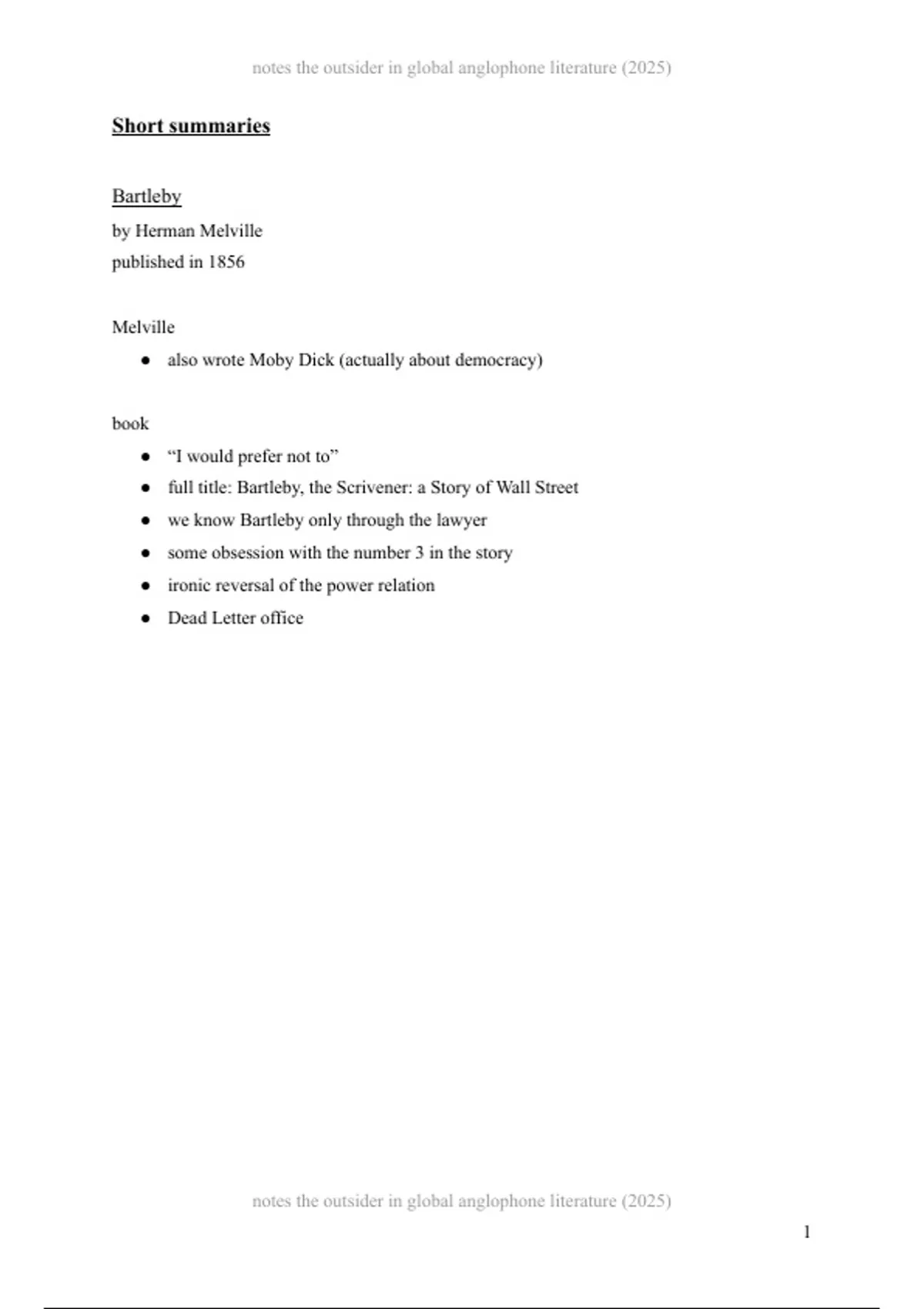 ● full title: Bartleby, the Scrivener: a Story of Wall Street
