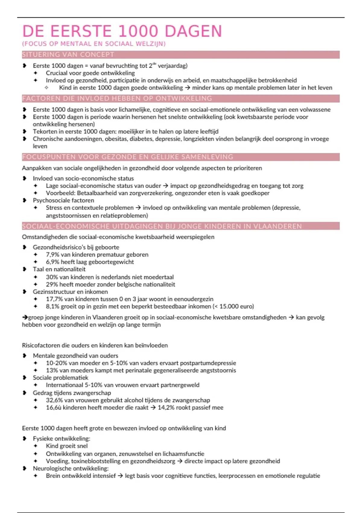 ❥ Eerste 1000 dagen = vanaf bevruchting tot 2de verjaardag)