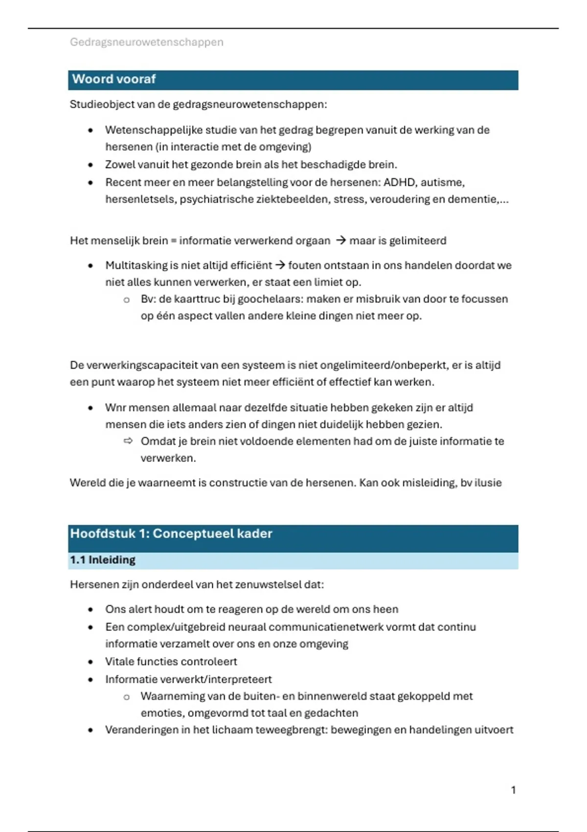 Uitgebreide samenvatting Gedragsneurowetenschappen adhv boek Hersenstof
