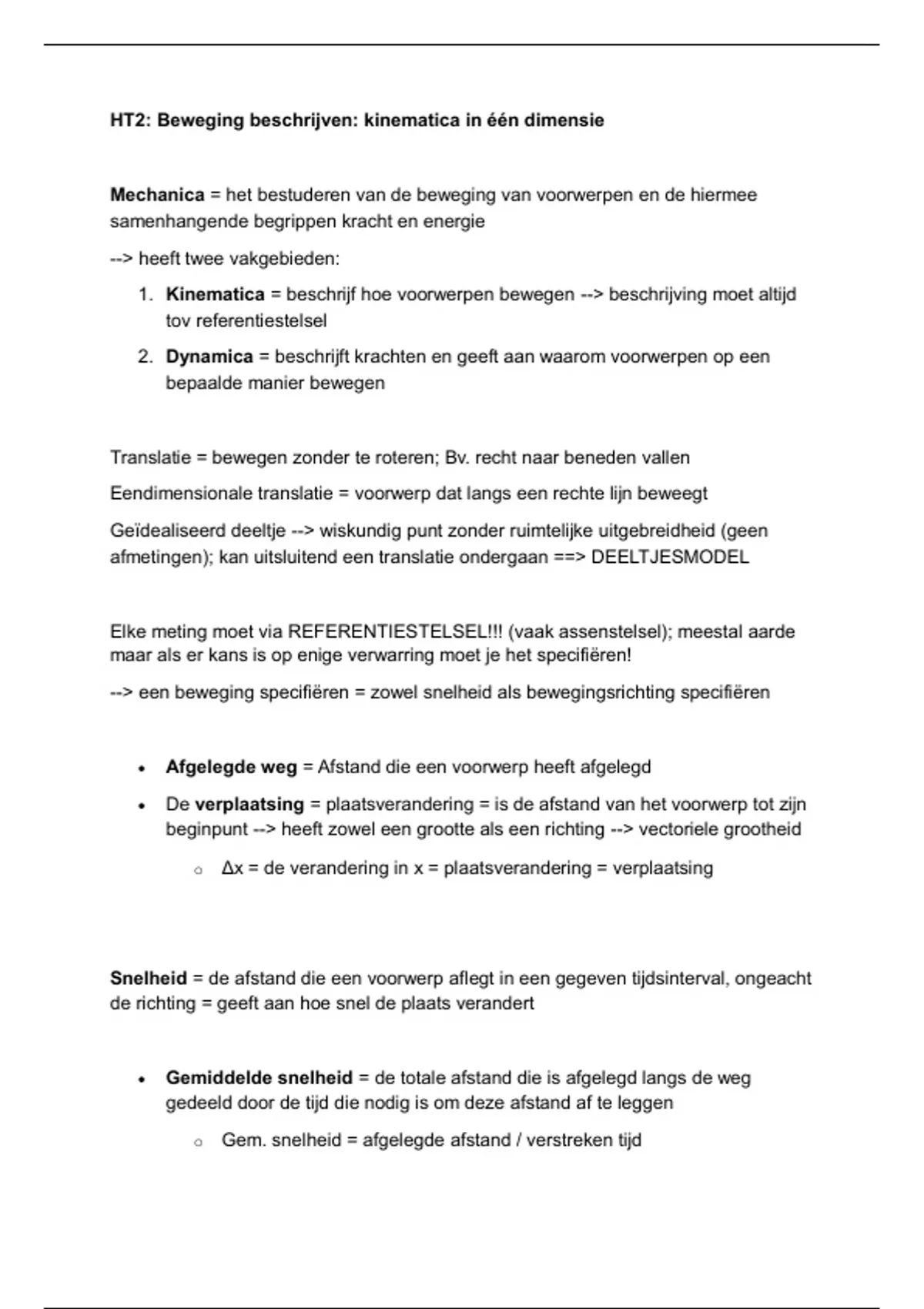 1. Kinematica = beschrijf hoe voorwerpen bewegen --> beschrijving moet altijd