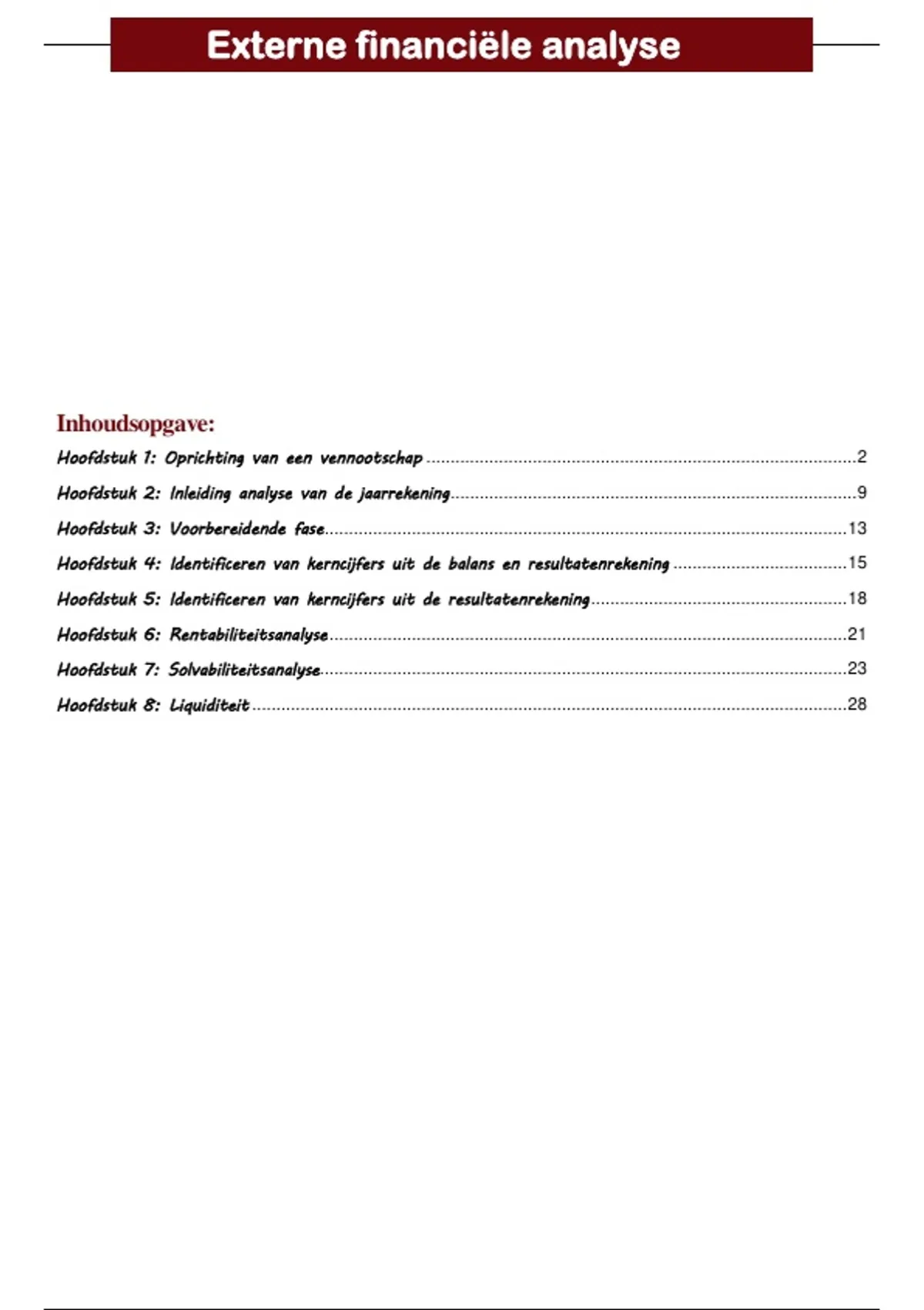 Een samenvatting van het vak de analyse van de jaarrekening + 1 hoofdstuk van vennootschapsboekhouden.