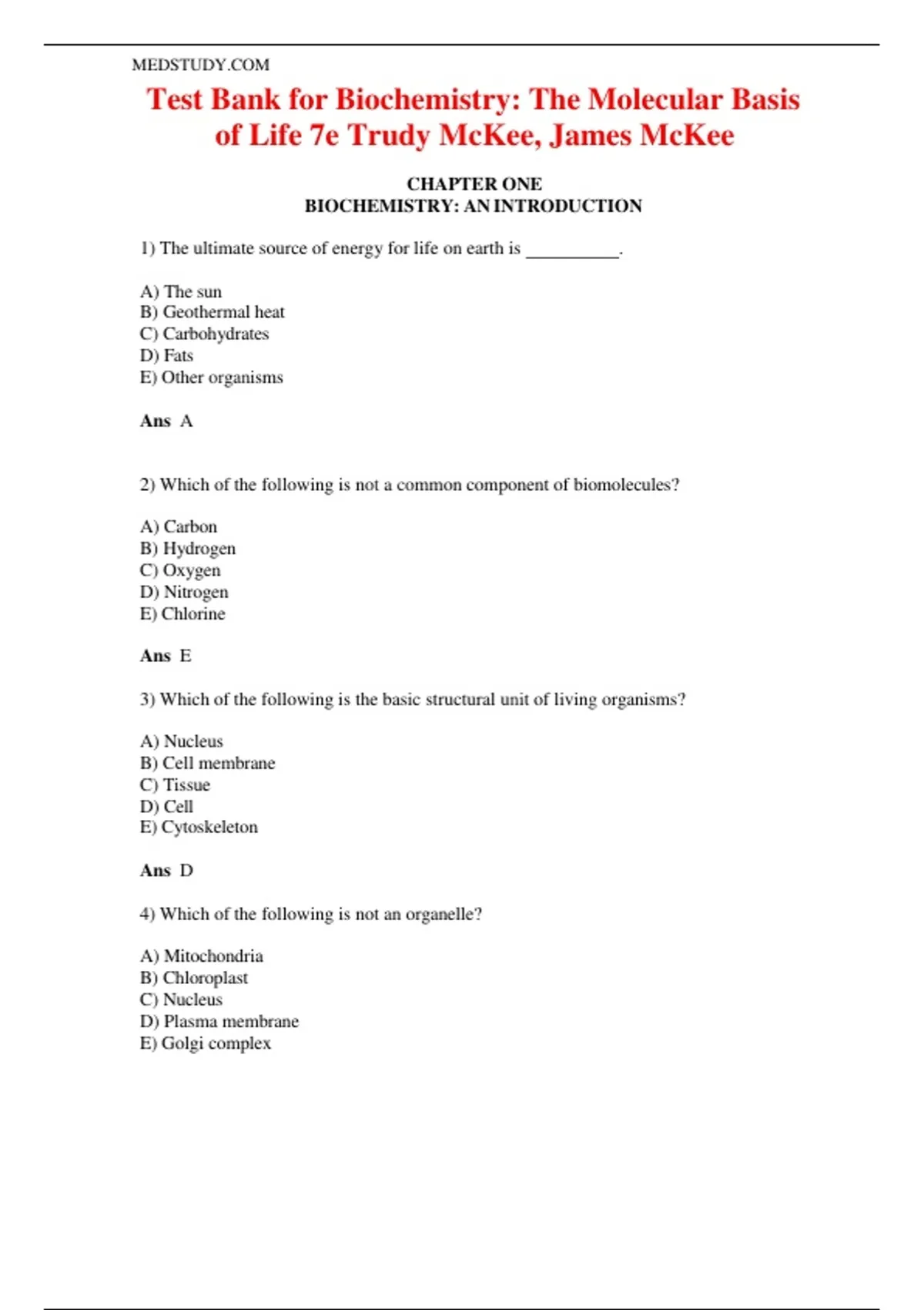 Test Bank for Biochemistry: The Molecular Basis