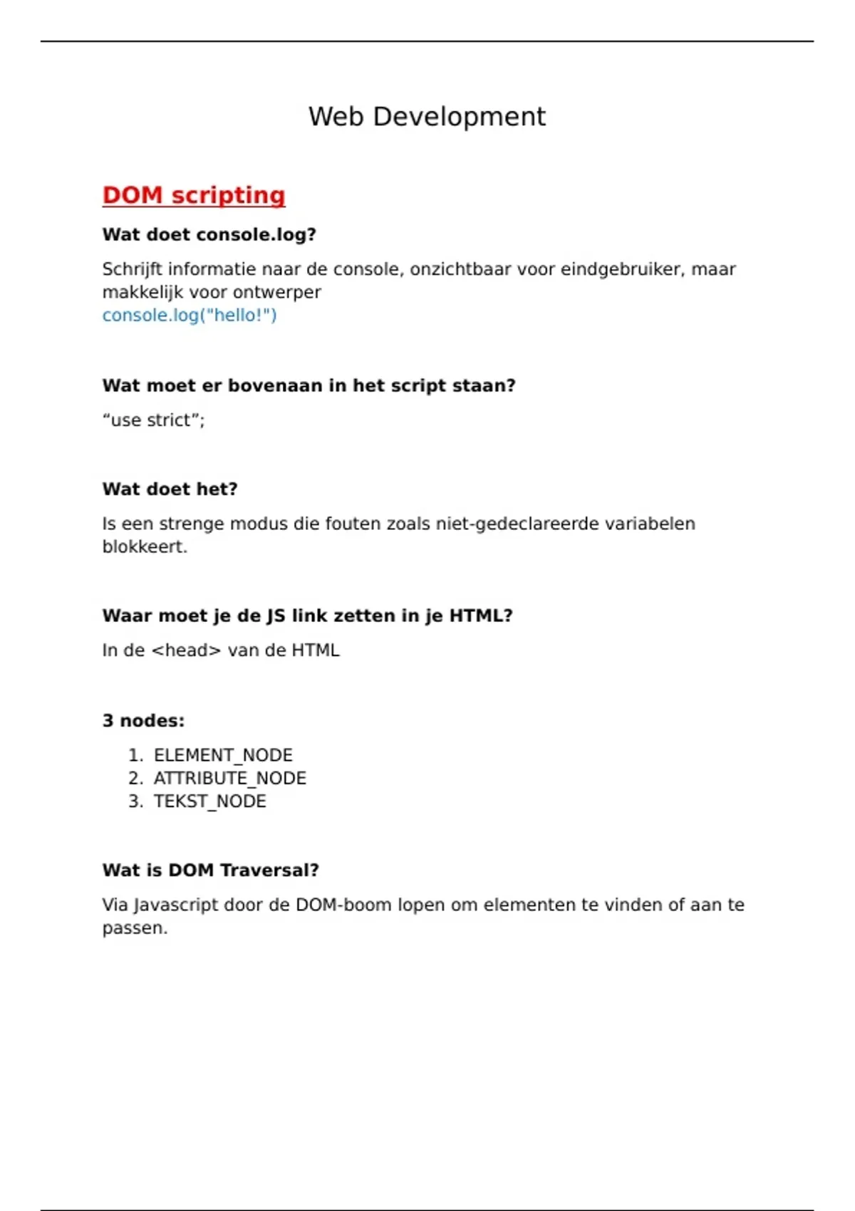 , Wat doen volgende DOM traversal eigenschappen?