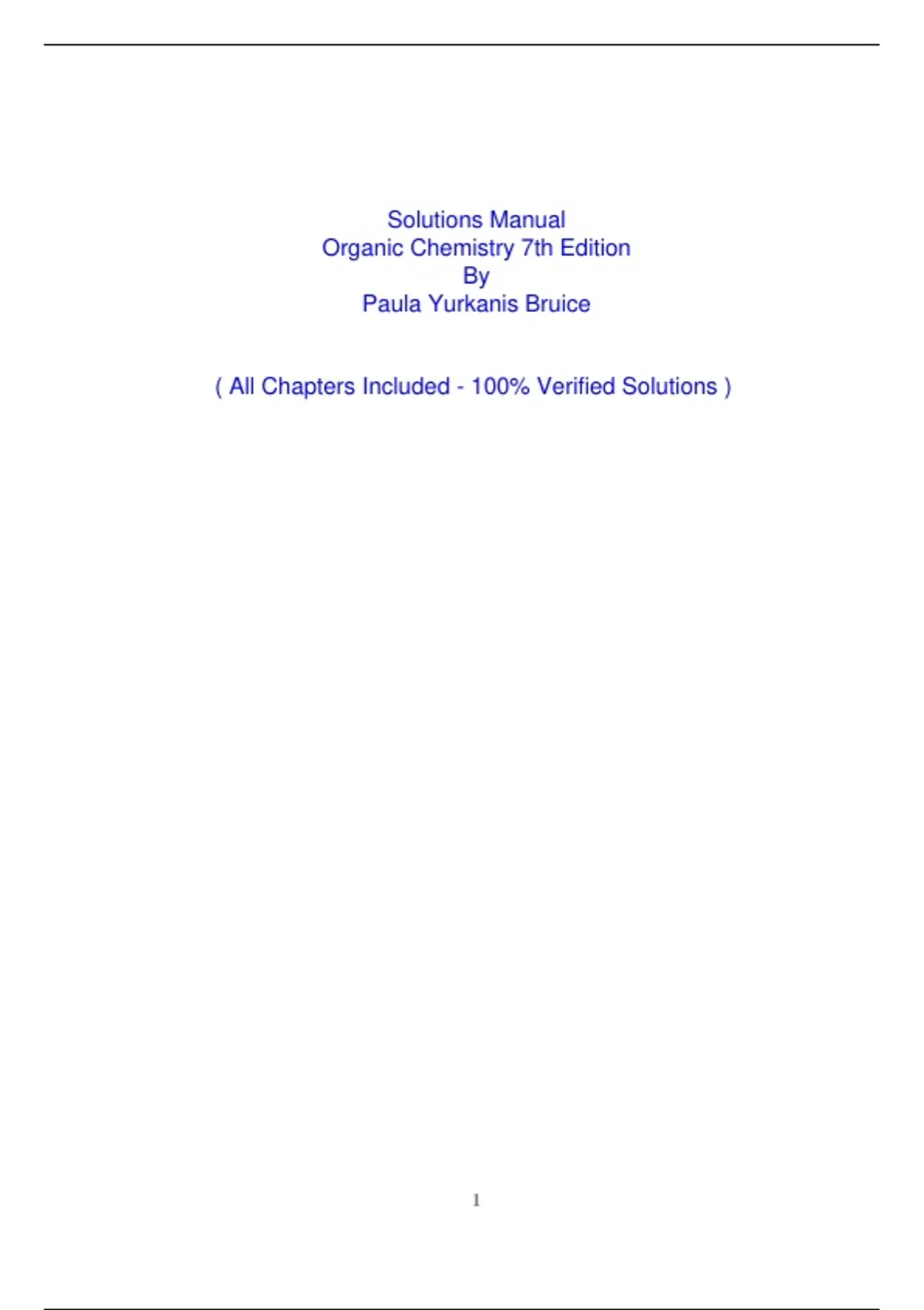 This is a complete solutions manual PDF for Organic Chemistry 7th Edition By Paula Yurkanis Bruice. It provides detailed, step-by-step answers to all exercises and problems.