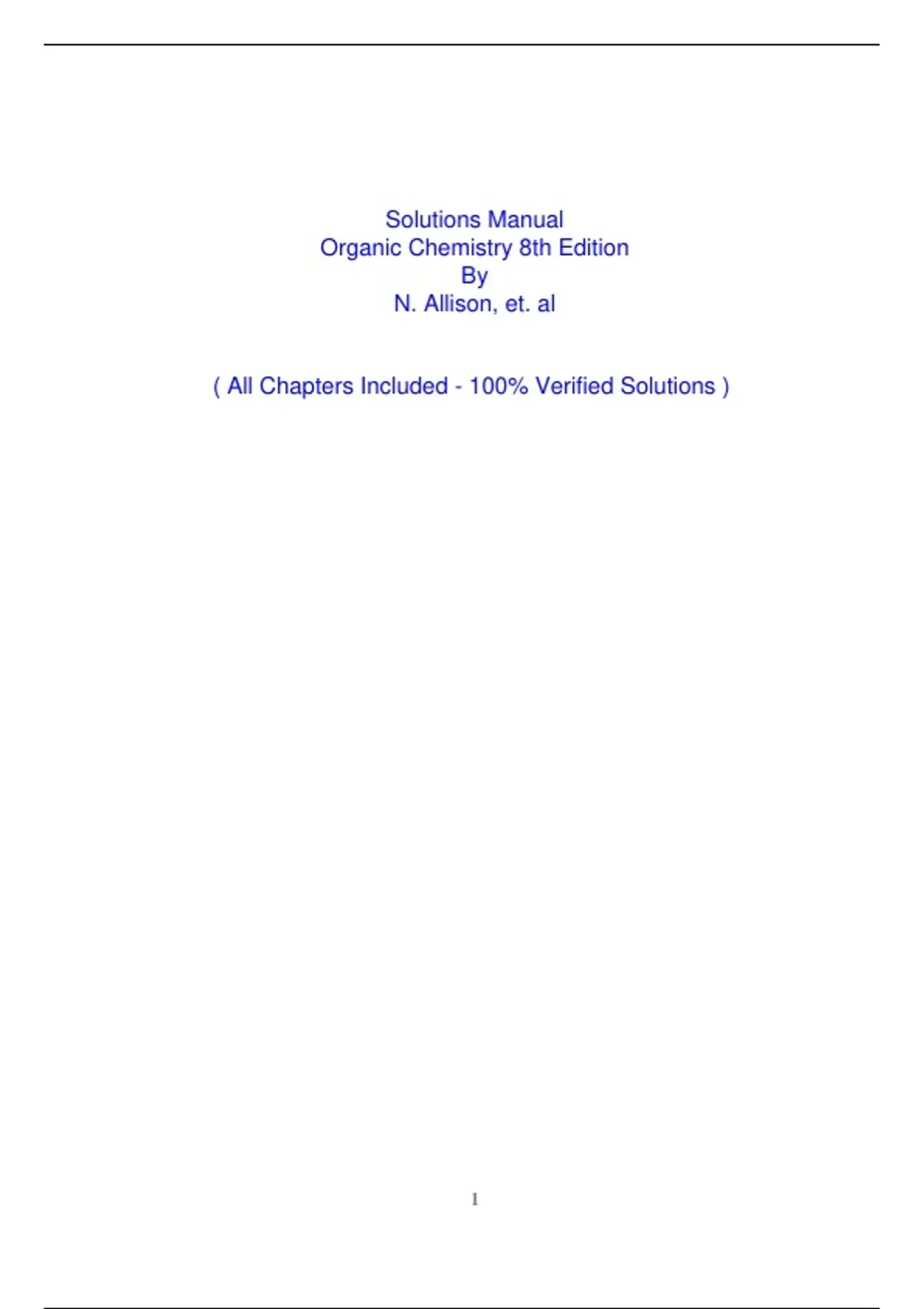 This is a complete solutions manual PDF for Organic Chemistry 8th Edition By N. Allison, et. al. It provides detailed, step-by-step answers to all exercises and problems.