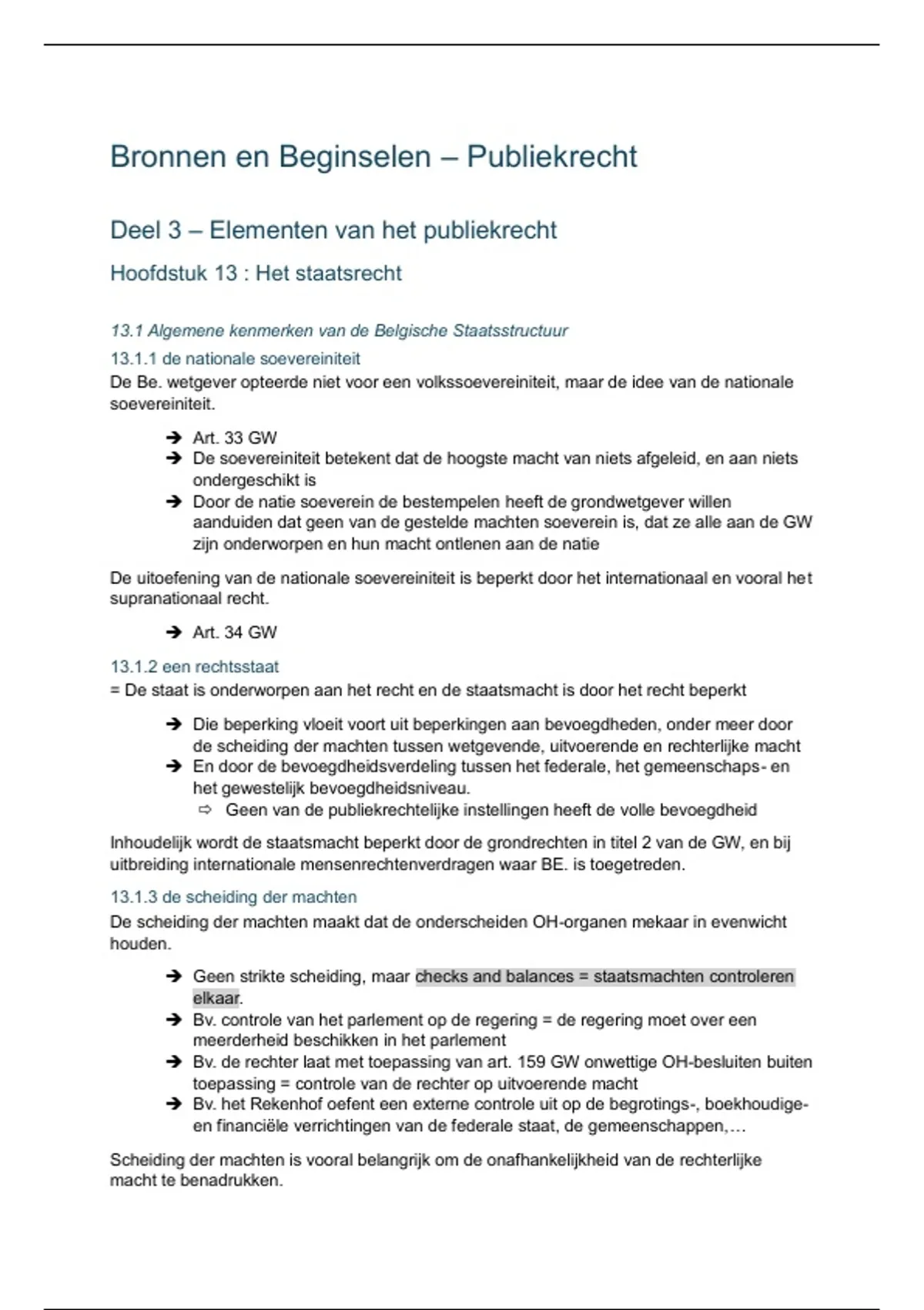 Hoofdstuk 13 : Het staatsrecht