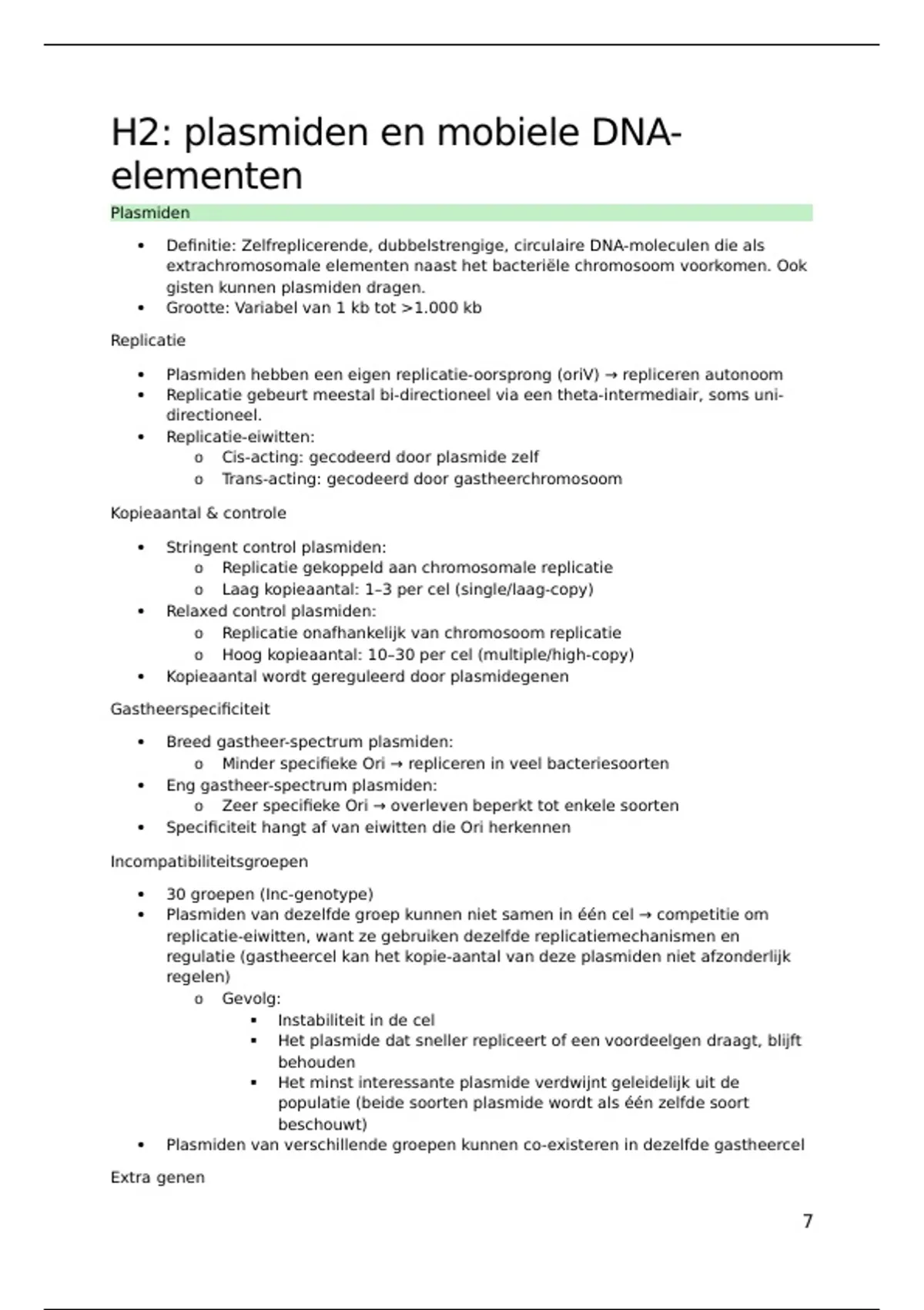 Volledige samenvatting van H2: plasmiden en mobiele elementen