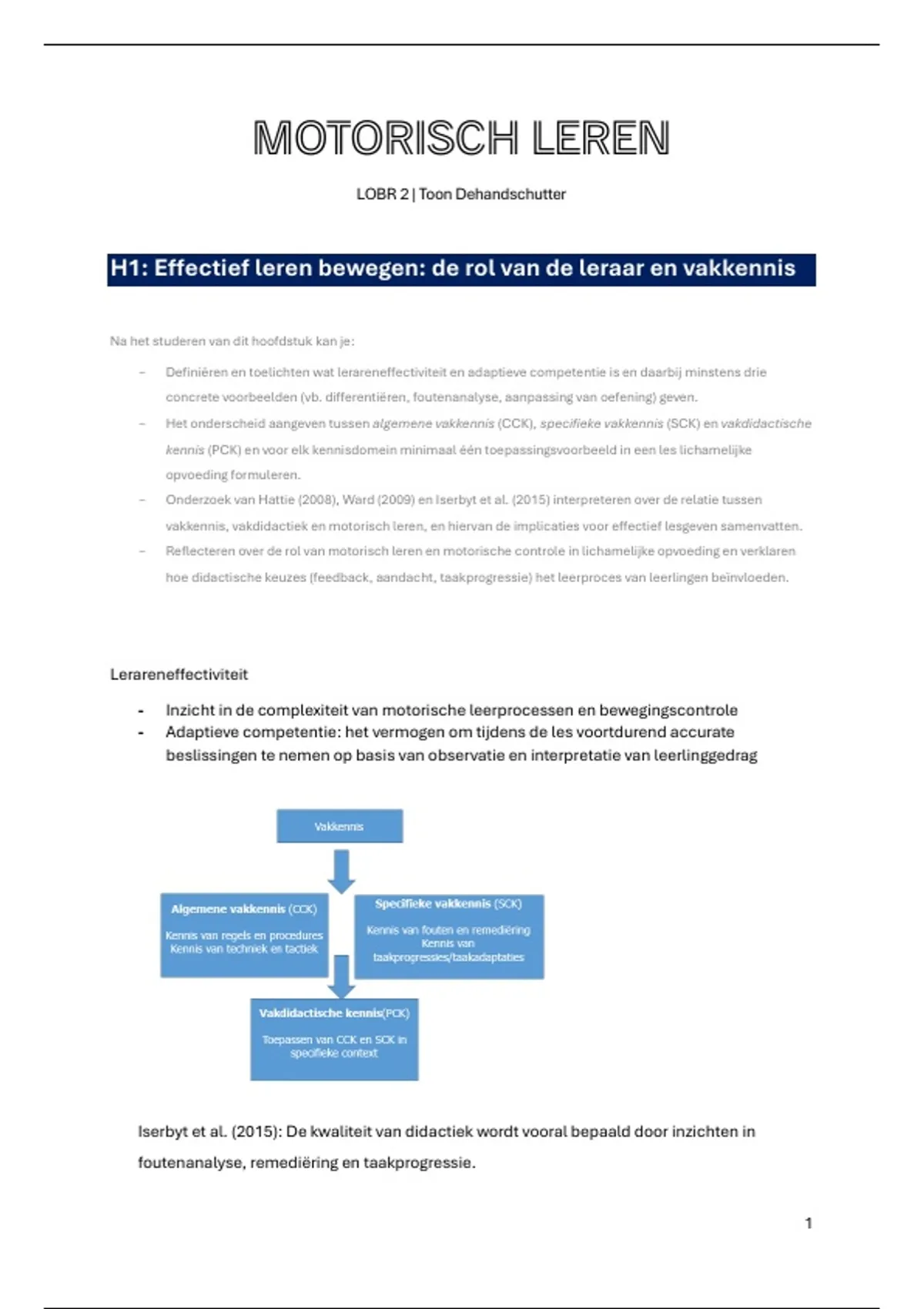 H1: Effectief leren bewegen: de rol van de leraar en vakkennis