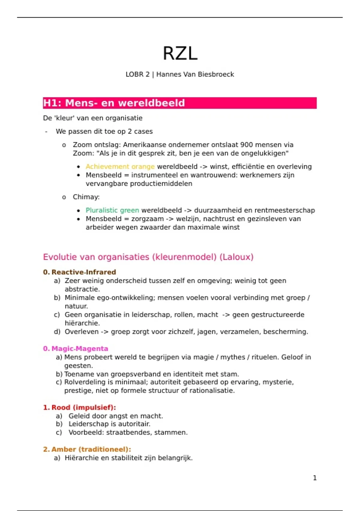 Samenvatting van 25 pagina's voor het vak RZL aan de UC Leuven-Limburg (samenvatting RZL 2)