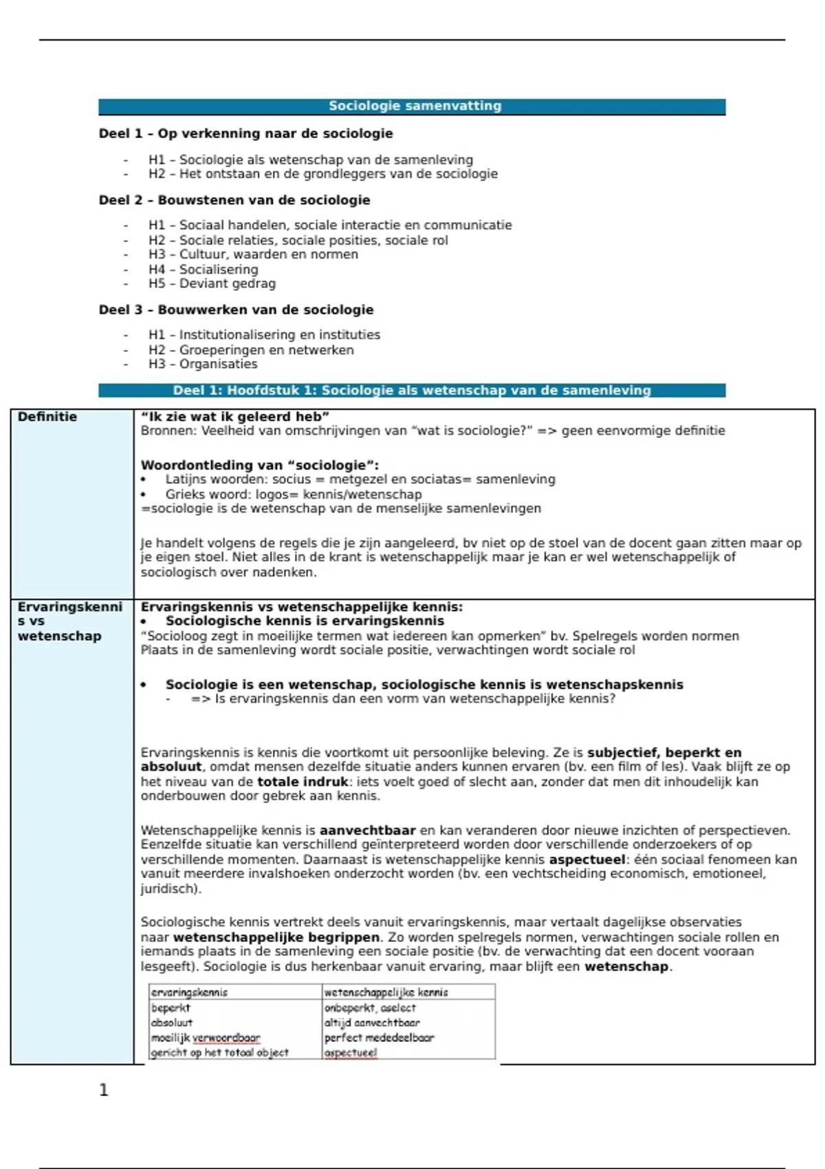 Deel 1: Hoofdstuk 1: Sociologie als wetenschap van de samenleving