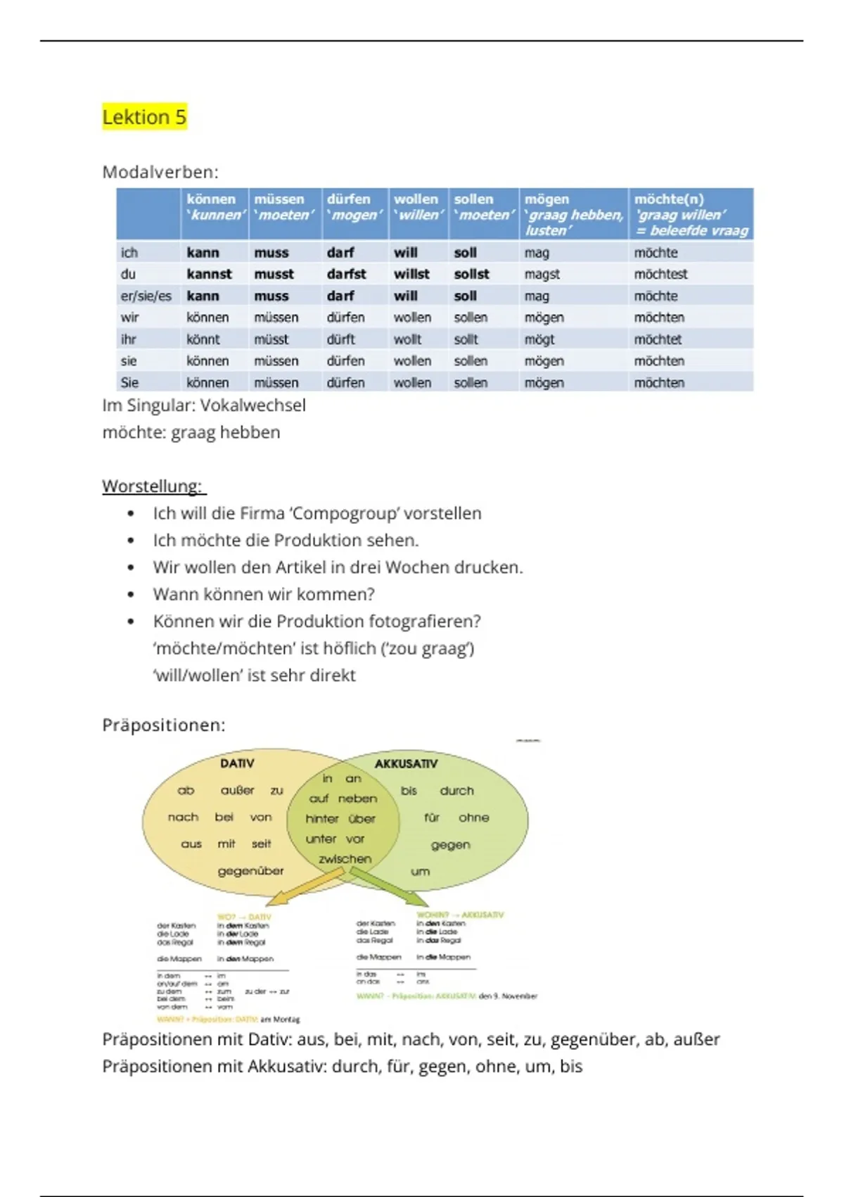 Samenvatting grammatica deutsch im Unternehmen 1
