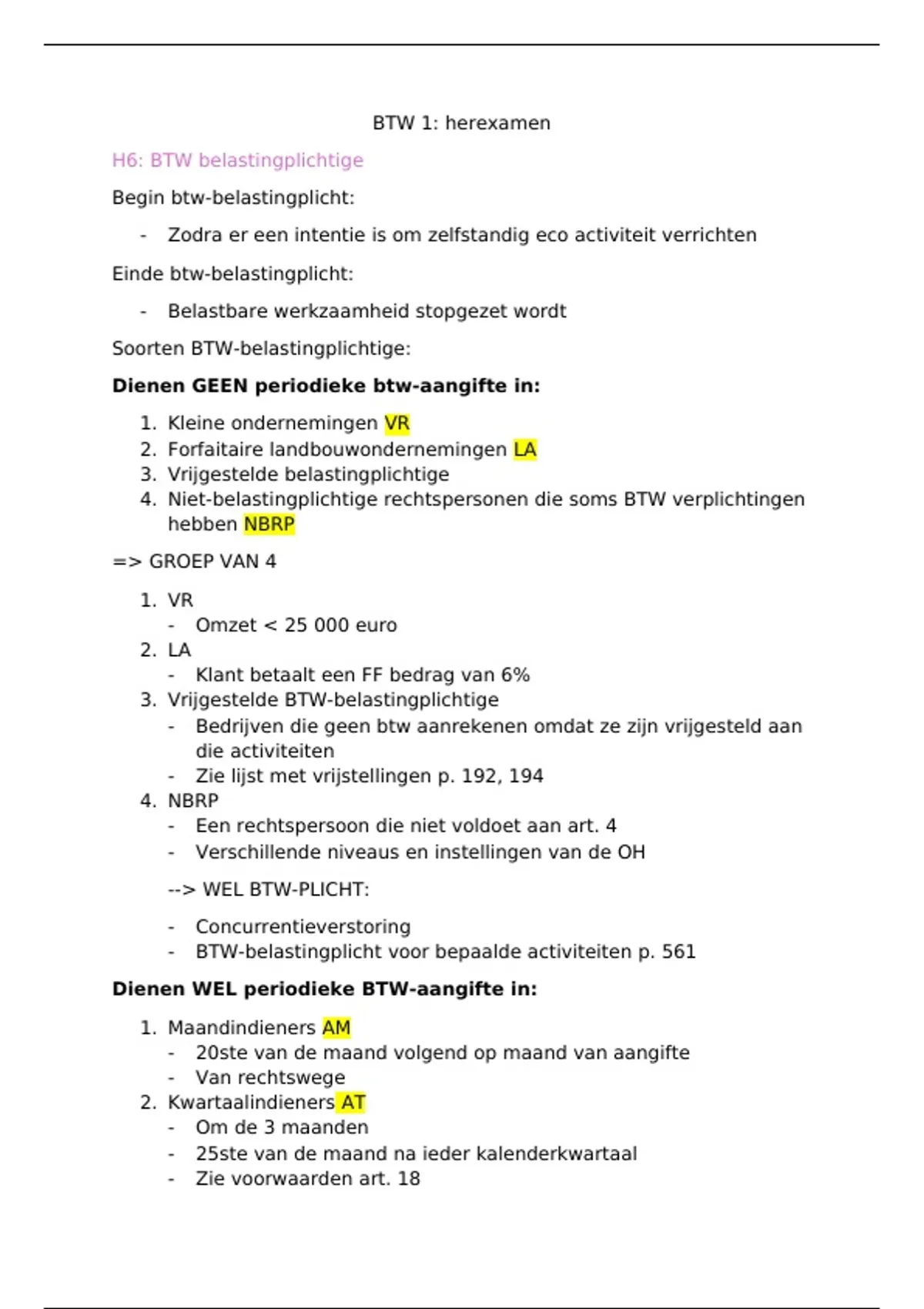 H6: BTW belastingplichtige