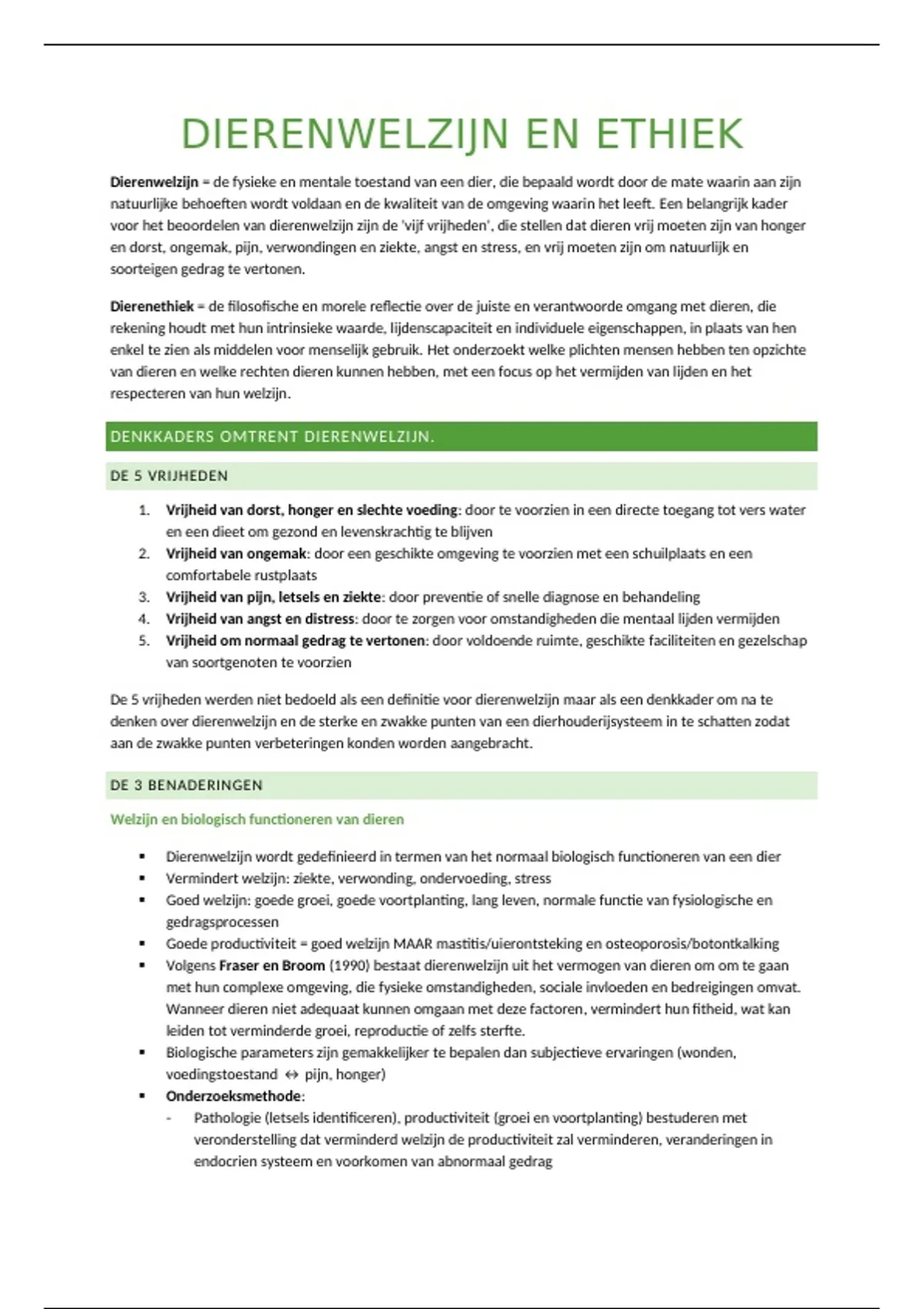 Dit is een goede samenvatting voor het vak Dierenwelzijn & Ethiek. Hier staat alles in dat je moet kennen voor het examen.