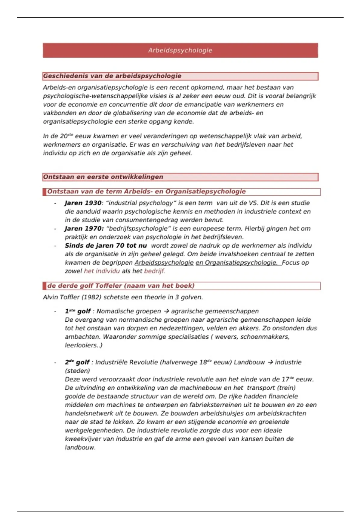 kwamen de begrippen Arbeidspsychologie en Organisatiepsychologie. Focus op