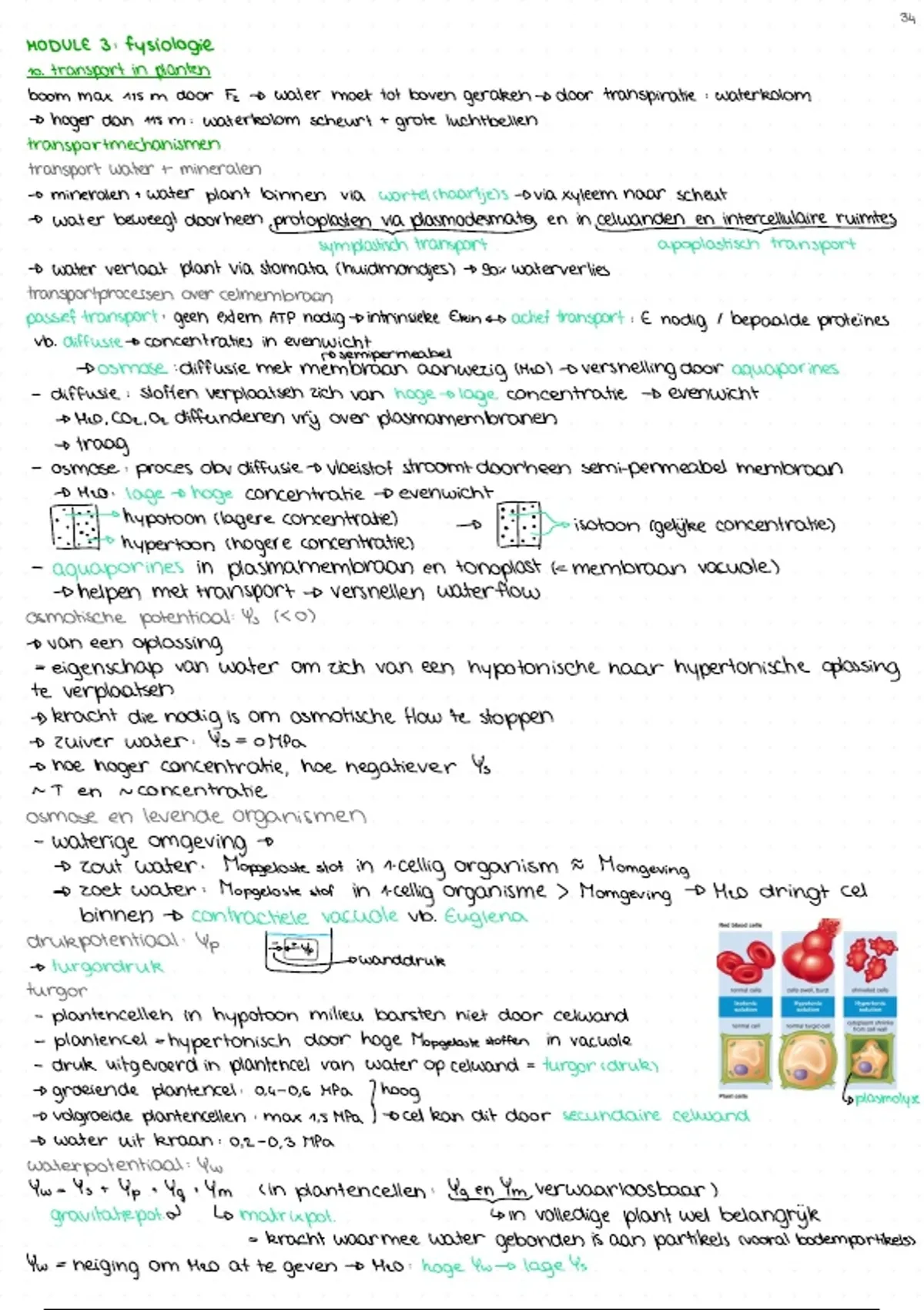 samenvatting MODULE 3 plantkunde: fysiologie (1ste bac bio-ingenieurswetenschappen KUL)